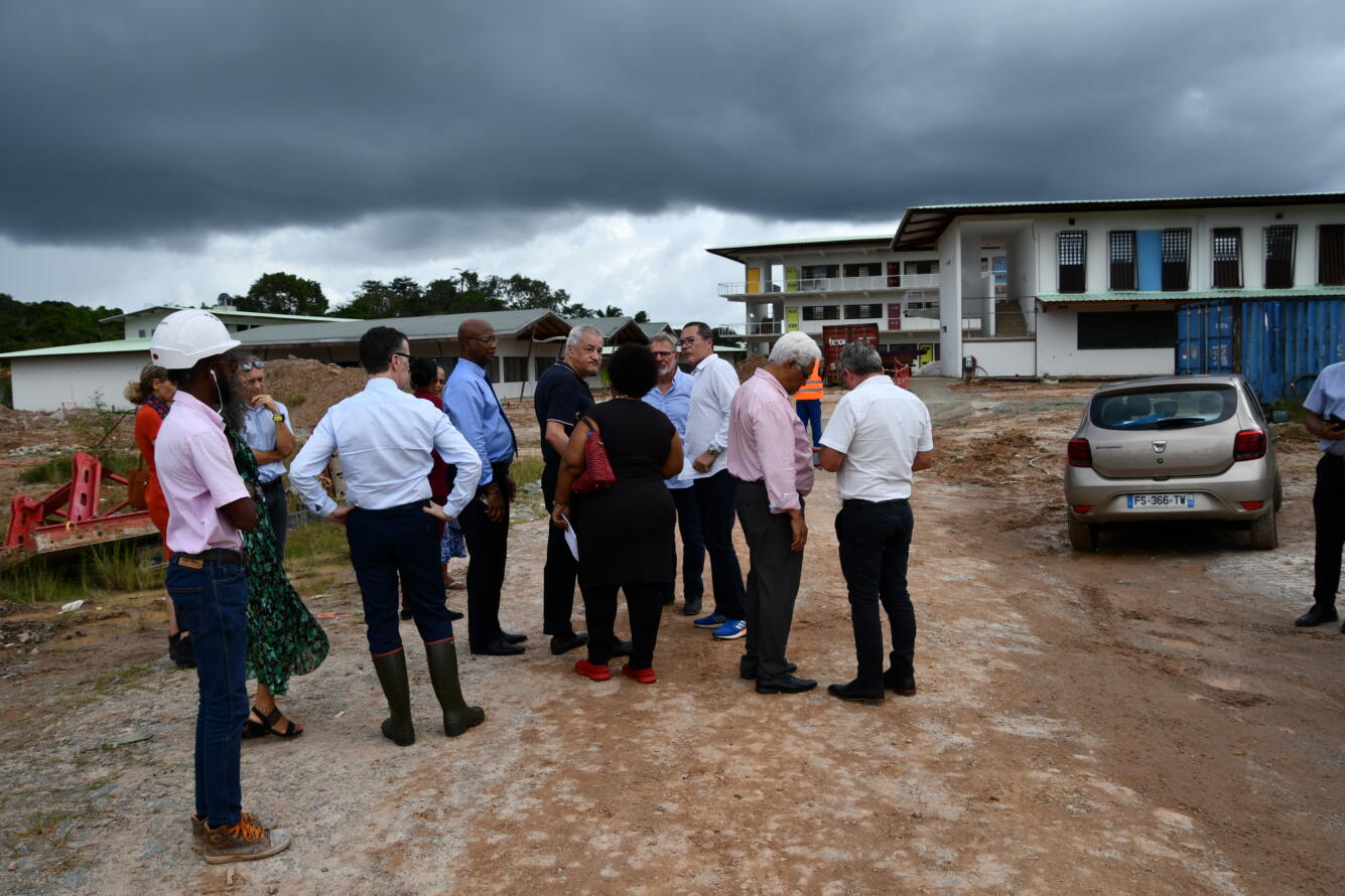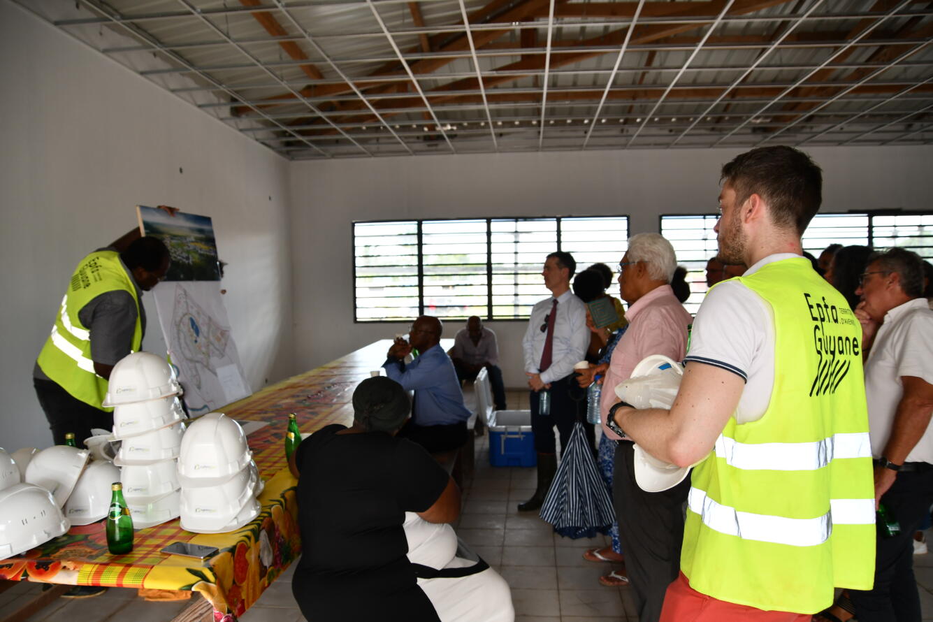C’est dans ce cadre que Gabriel Serville, président de la Collectivité territoriale de Guyane et Isabelle Vernet, conseillère territoriale, déléguée à la réussite scolaire et à la lutte contre le décrochage se sont rendus le mercredi 5 juin 2024, sur le site du collège en construction accompagnés d’une délégation composée de Phillipe Dulbecco, recteur de l’académie de Guyane, Patrick Lecante, maire de la commune, des techniciens de la maîtrise d’œuvre, de l’EPFA Guyane et de la CTG, afin de constater l’état d’avancement des travaux et s’assurer de la faisabilité d’une ouverture en septembre prochain.