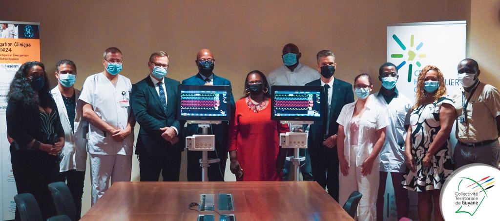 25 moniteurs multiparamétriques de réanimation ont été remis, aujourd’hui, par Patrick Karam, 6ème vice-président de la Région Ile-de France en déplacement en Guyane, en présence de Gabriel Serville, président de la Collectivité Territoriale de Guyane, au CHC représenté par son directeur Christophe Robert.
