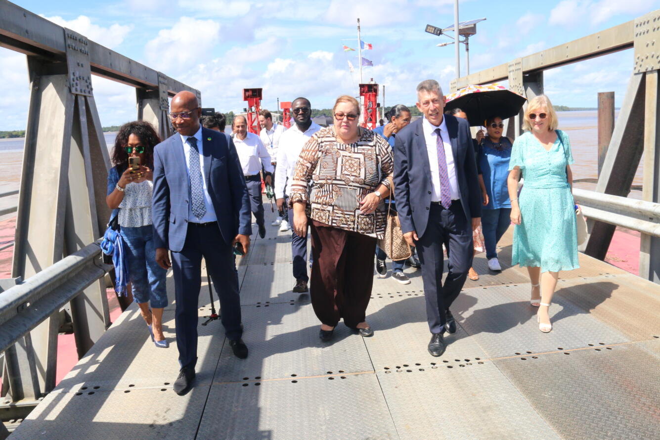 Cette cale d’accostage permettra au bac Malani, de fonctionner et d’offrir un moteur de croissance, de commerce et d’échanges entre les deux territoires. Plusieurs partenaires financiers y ont contribué : la CTG par le biais des fonds européens, la CCOG pour partie, et aussi pour la partie technique par des opérateurs Surinamais.