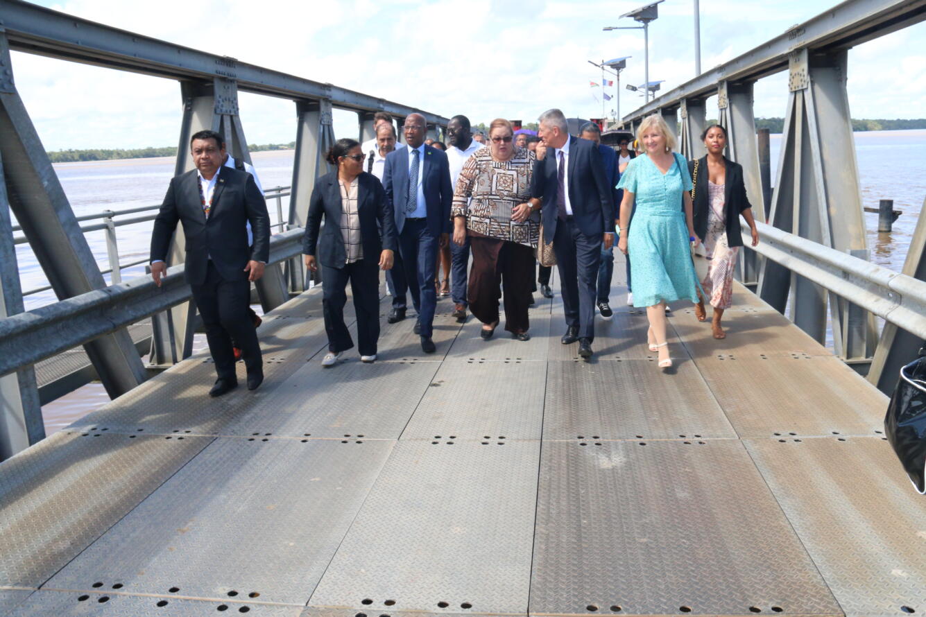 Une délégation d’élus territoriaux conduite par Gabriel Serville, président de la Collectivité territoriale de Guyane (CTG), s’est rendue le vendredi 23 juin 2023, à Albina au Suriname, dans le cadre de la pose de la 1ère pierre des travaux de la cale d’accostage d’Albina pour la mise en service du bac Malani. Participaient également à cet événement, une délégation de la Communauté de Communes de l’Ouest Guyanais (CCOG) menée par sa présidente, Sophie Charles et Indratia Deel, Consule Générale du Suriname.