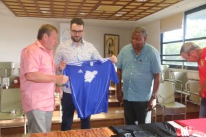 C’est au 4ème Vice-Président de la Collectivité Territoriale de Guyane, Jean-Claude Labrador, délégué au Sport et au Cadre de Vie que revenait l’honneur de remettre, en présence du Secrétaire général de la Ligue de Football de Guyane, Antoine Nelson, ces équipements aux représentants des clubs d’Aguado et de Matoury, qui s’affronteront pour la première marche du podium de la compétition sportive.