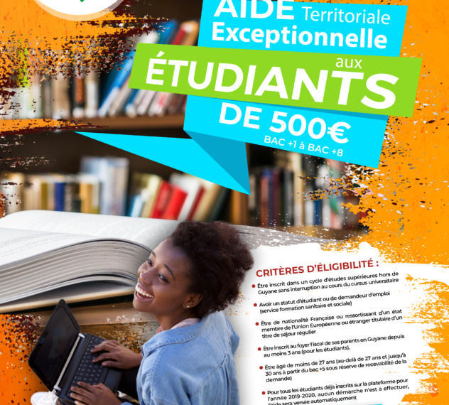 Suite aux difficultés financières rencontrées par de nombreux étudiants hors du territoire, en raison de la crise sanitaire liée à la Covid-19, un dispositif d’aide exceptionnelle de 500 euros était voté à l’unanimité en Assemblée Plénière le mardi 28 avril 2020, à destination des étudiants hors du territoire ayant fait une demande d’aide territoriale, entre septembre et décembre 2019, au titre de l’année universitaire 2019-2020.