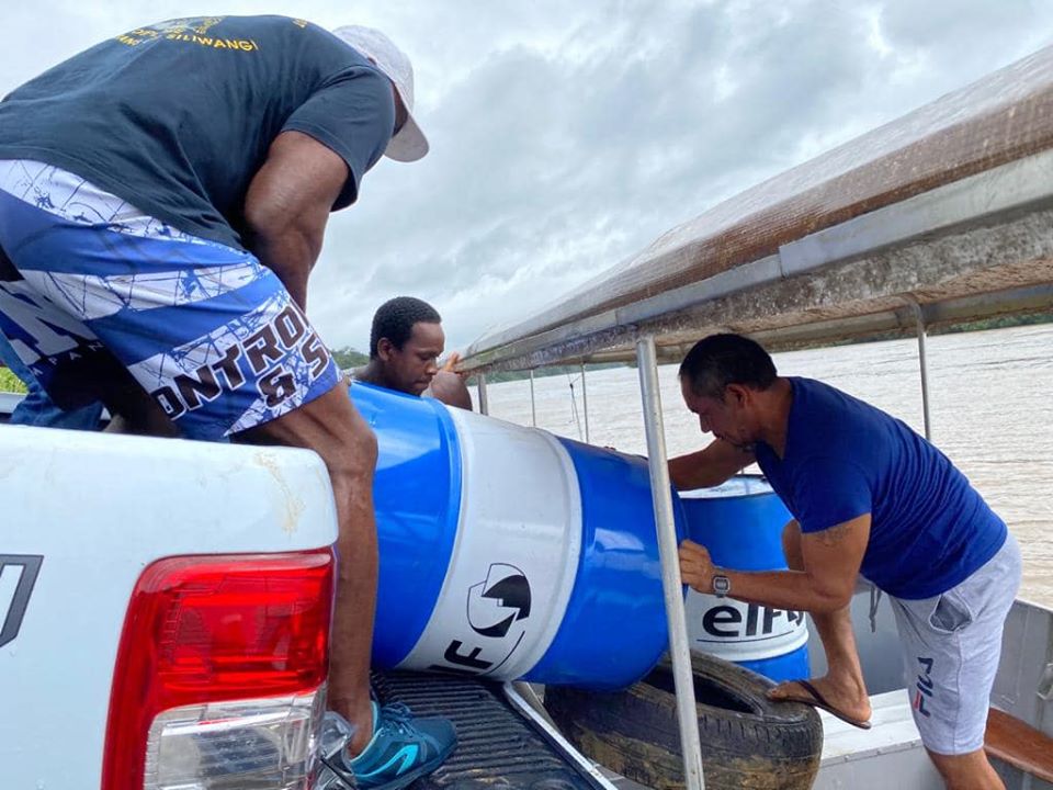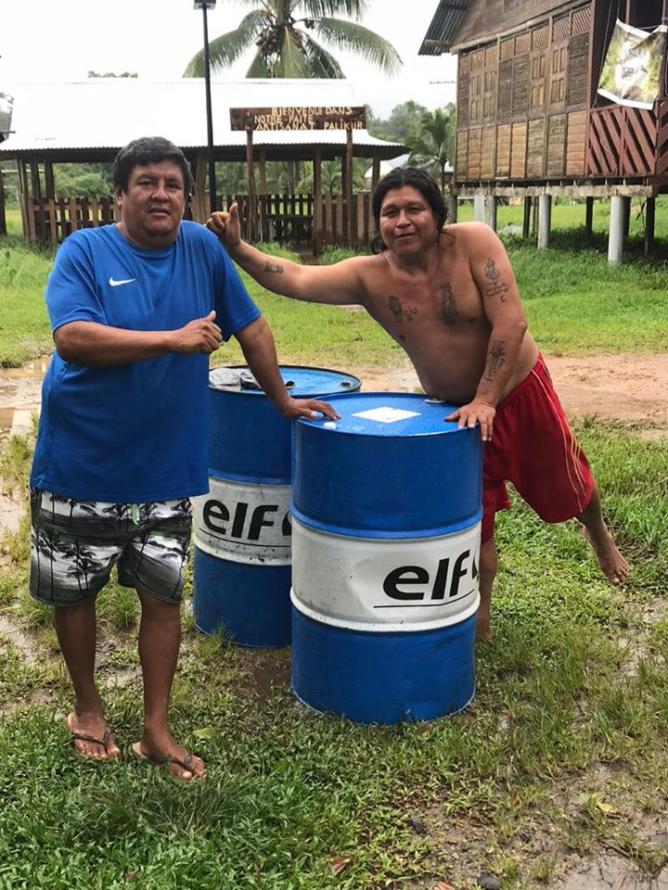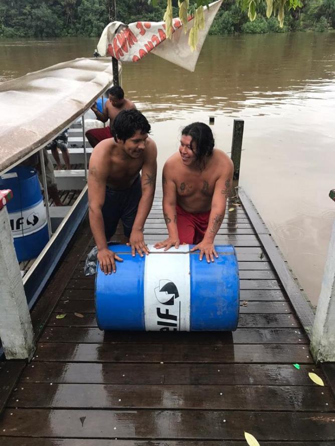 Suite à la sollicitation des membres de l’association amérindienne Walyku, la Collectivité Territoriale de Guyane (CTG) a fait livrer deux fûts à carburant aux habitants du village afin de favoriser leur autosuffisance alimentaire et énergétique permettant leur accès aux ressources naturelles de la zone (pêche, chasse) jusqu’à la décrue et au déconfinement annoncé.