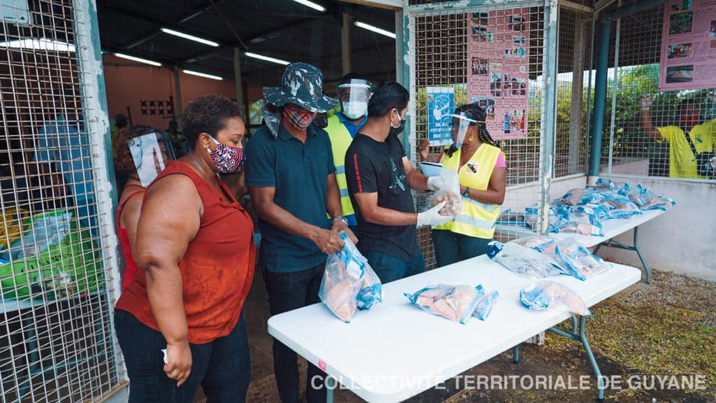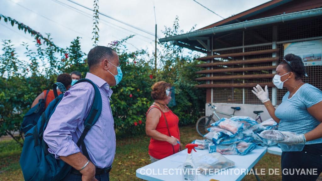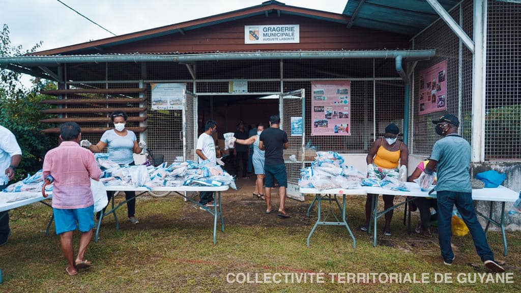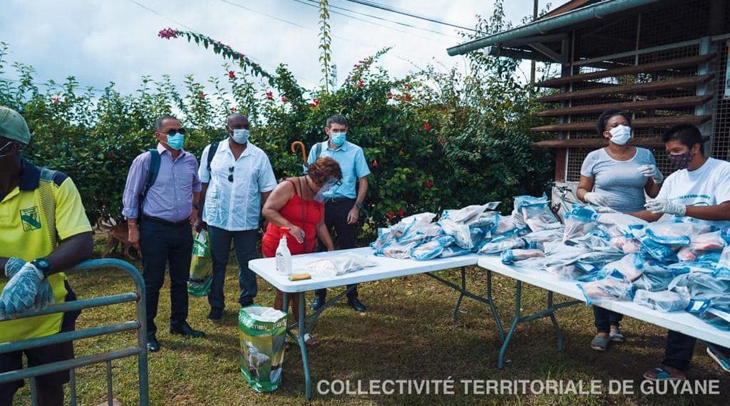Plus d’1 tonne de poissons distribuée à Saint-Georges de l’OyapockPartenariat CTG / COGUMER / DÉLIMER / ABCHÉEDarnes d’acoupa, de vivaneau, steak de machoiran blanc et boulettes, filet de saumon… voici ce qui a été apporté en quantité ce matin à Saint-Georges de l'Oyapock où les habitants sont toujours confinés et où les ravitaillements sont limités.Rodolphe Alexandre remercie les entrepreneurs qui ont été sollicités pour cette opération de la CTG qui a été montée afin de pouvoir répondre favorablement à une demande du maire de la commune, Georges Elfort, pour ses administrés.