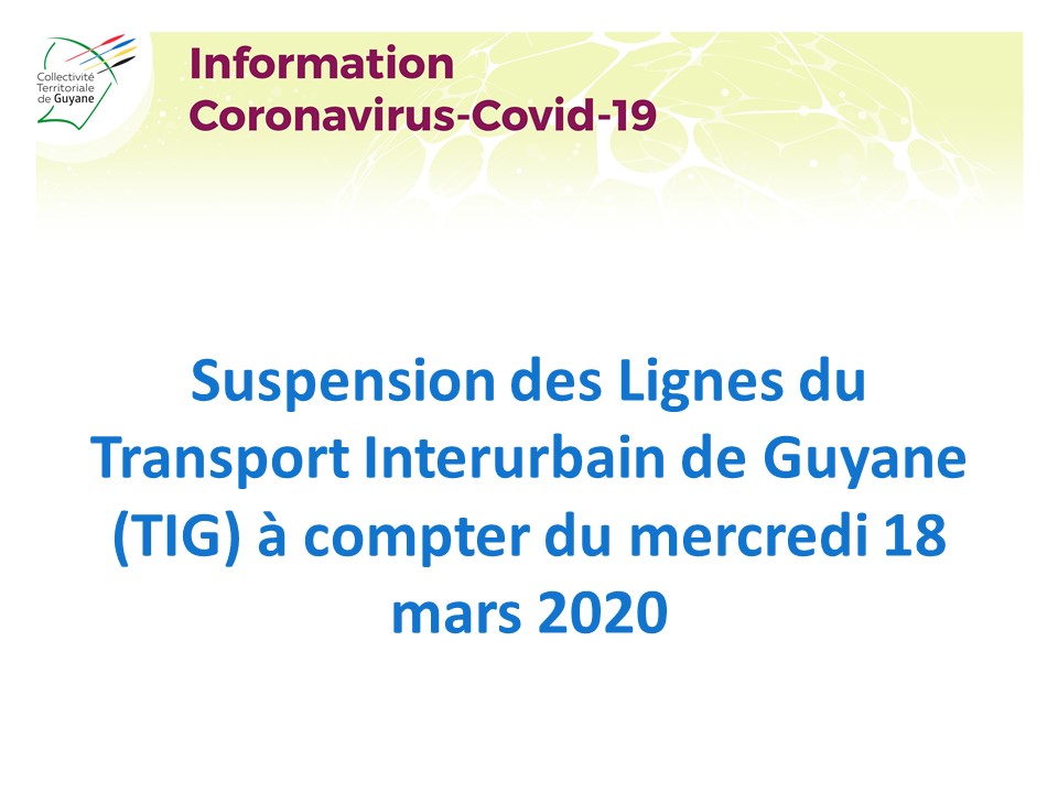 La suspension du réseau TIG contribuera à limiter les échanges entre les bassins de vie et par conséquent la propagation du coronavirus covid-19 sur le territoire guyanais.