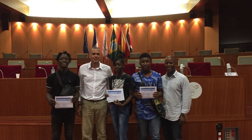 Aujourd’hui samedi 20 mai 2017, le vice-Président délégué à l’éducation, l’apprentissage et la formation professionnelle, Claude Plenet, a eu le plaisir de remettre à trois jeunes du Collège Eugénie Tell-Eboué de Saint-Laurent du Maroni, leurs billets d’avion pour l’Hexagone.