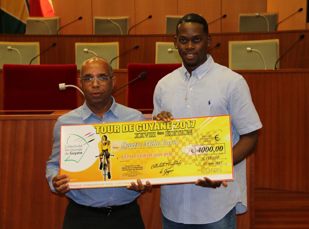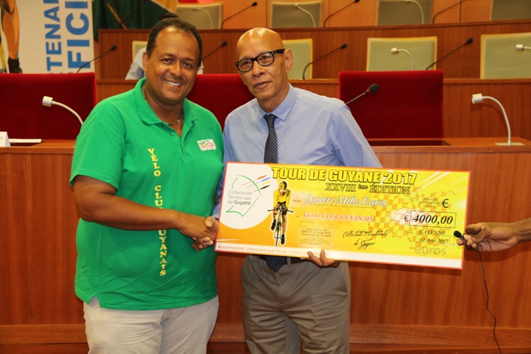 Lors de sa prise de parole, le Président du Comité Régional de Cyclisme de la Guyane n’a pas manqué de remercier la collectivité territoriale (et précédemment la Région Guyane) qui soutient depuis une dizaine d’années maintenant les clubs locaux, notamment à travers cette prime de participation leur permettant ainsi de prendre part au tour de Guyane.