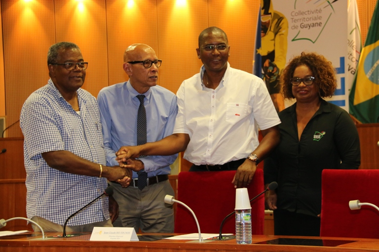La 28ème édition du tour cycliste de Guyane se déroulera du 19 au 27 août 2017. La Collectivité Territoriale de Guyane, partenaire officiel des équipes locales et sponsor du maillot jaune, recevait dans ses murs ce mercredi 2 août 2017, les représentants des 10 clubs locaux participant au prochain tour de Guyane afin de procéder à la traditionnelle remise de chèques. L’heure était également à la signature de la convention de Partenariat avec Guyane 1ère.