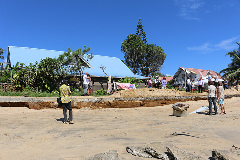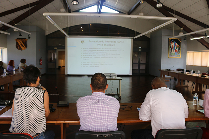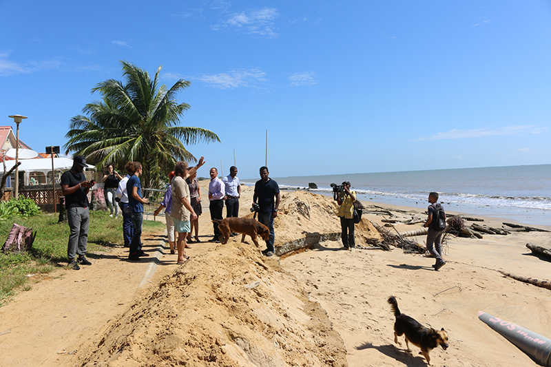 A la veille de cette réunion, le Président de la CTG, recevait Denis Girou, Directeur de la DEAL de Guyane et Anne Saunier, Conseillère municipale de Kourou, afin de discuter et ainsi trouver des solutions pour répondre aux doléances des habitants des secteurs concernés. La commune de Kourou connait une érosion généralisée de son littoral, particulièrement sur l’avenue de l’Anse et le village Amérindien, en raison de sa position actuelle dite « situation inter-bancs ». En effet, l’absence de banc de vase face à la commune de Kourou empêche le littoral de la commune de bénéficier de l’effet protecteur de ce dernier face aux houles du large. En février dernier, Hélène Sirder, Vice-présidente de la CTG, déléguée à l’environnement, mines et énergie, s’était rendue sur le terrain, en compagnie du Maire, suite à des inondations survenues sur les deux zones concernées : le village Amérindien et le quartier de l’Anse.