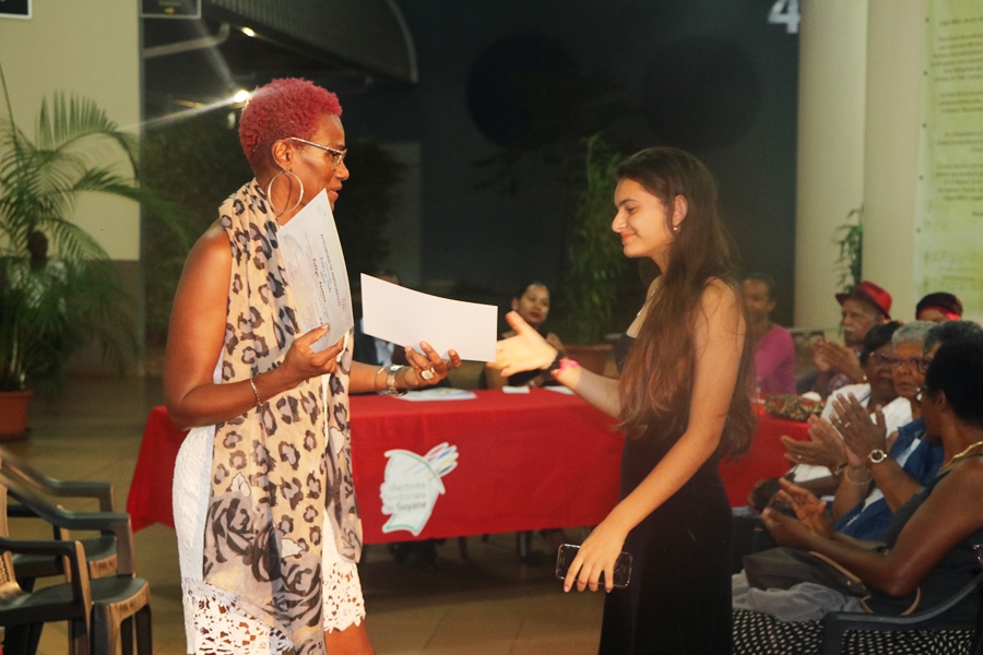 Et c’est à la Vice- Présidente de la CTG, déléguée à la Culture, Rolande Chalco-Lefay qu’il revenait de remettre son prix à la gagnante mais également de récompenser l’ensemble des participants pour la qualité de leurs œuvres, avec une mention spéciale pour Célaine Jeanette qui a obtenu le Prix Coup de cœur du jury, présidé par Elie Stephenson, face à un public venu en nombre.
