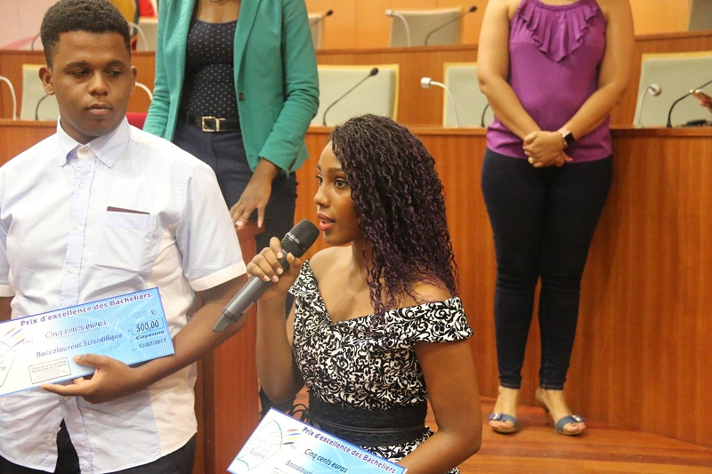 Durant cette cérémonie, un chèque d’une valeur de 500 euros a été remis à chaque bachelier par le 12èmeVice-Président de la CTG, Claude Plénet, délégué à l’Education, la Formation Professionnelle et l’Apprentissage et les Conseillers Territoriaux Elainne Jean et Hadj Bouchehida. Cette aide attribuée par la CTG contribue essentiellement à prendre en charge les premières dépenses de la scolarité en études supérieures.