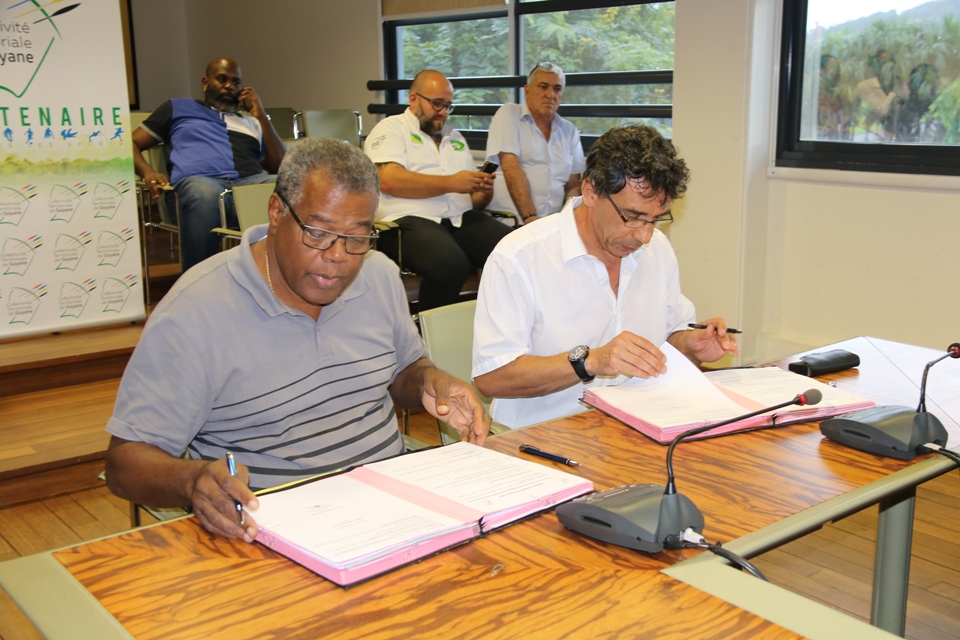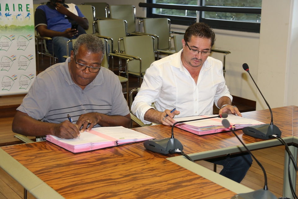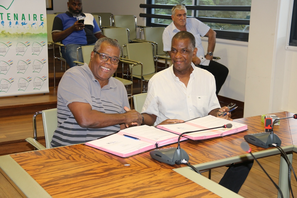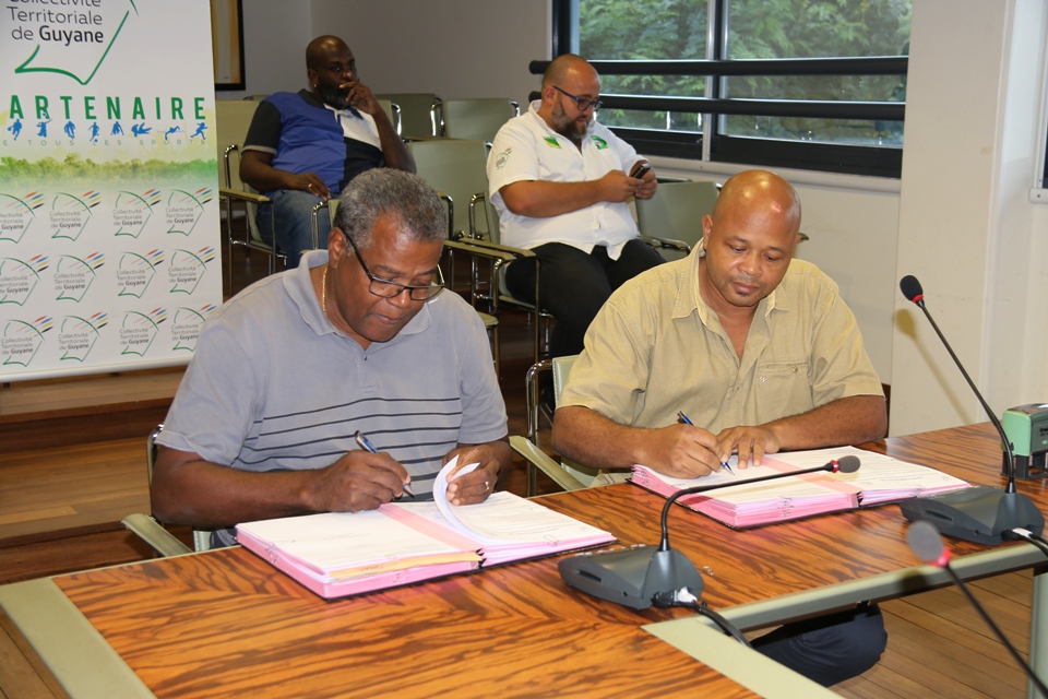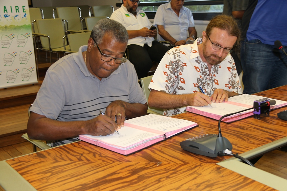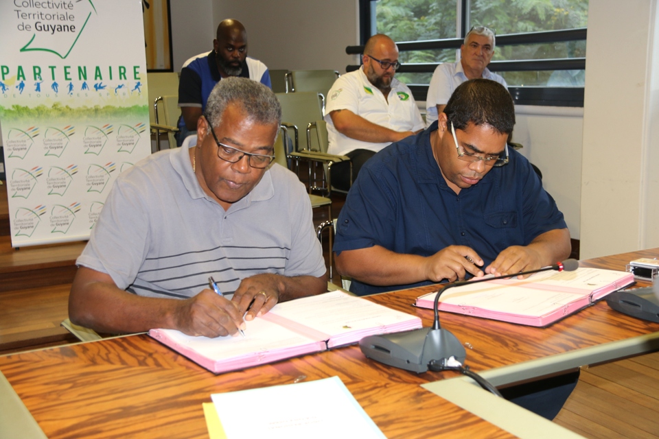 A travers cet accord partenarial, la Collectivité Territoriale de Guyane a réaffirmé sa volonté de soutenir les ligues et comités sportifs dans leur structuration, notamment dans le domaine de la formation des cadres et des sportifs, en signant cet accompagnement financier sous forme de « Contrat d’Objectifs » à hauteur de 197 000 euros/an, soit 591 000 euros sur 3 ans ( 2018-2019 et 2020), aligné sur l’Olympiade de 2020 (football, volley-ball, tennis de table, rugby, basket-ball, canoë-kayak, escrime, judo, cyclisme, athlétisme et handball).