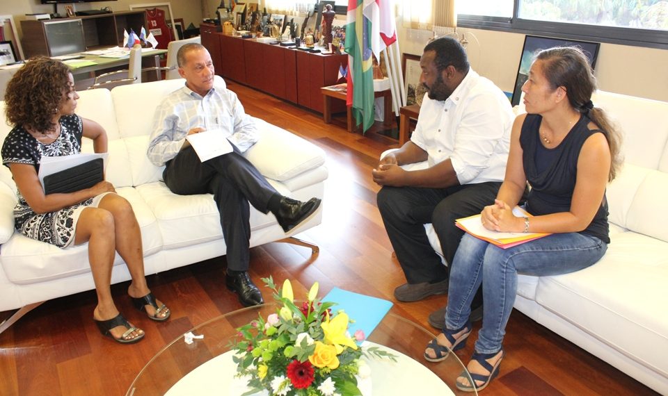 Le Président Directeur Général de la Société par Actions Simplifiée Unipersonnelle (SASU) Maia Village, spécialisée dans l’accueil de jeunes enfants, Joël Francillonne accompagné de son assistante s’est entretenu avec le Président de la Collectivité Territoriale de Guyane (CTG), Rodolphe Alexandre le jeudi 30 novembre 2017 afin de présenter la situation de la nouvelle crèche « Les Azurites » et les difficultés d’ordre administratif d’autorisation d’ouverture rencontrées, lui permettant de finaliser ce projet, ex chemin Moges à Stoupan sur la commune de Matoury