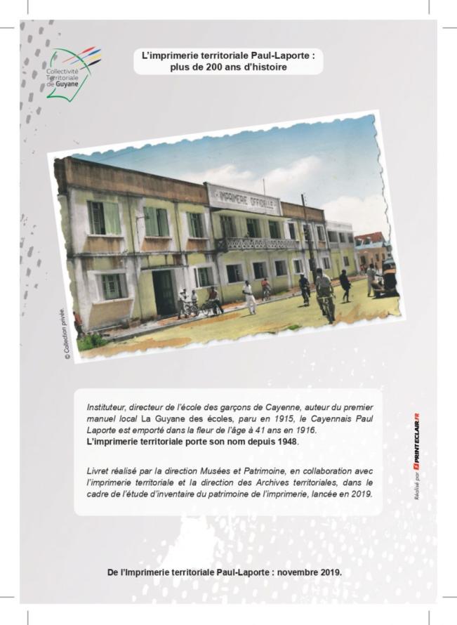 Dans ce cadre, la Collectivité Territoriale de Guyane vous invite aujourd’hui à découvrir ou redécouvrir l’exposition “L’imprimerie territoriale Paul Laporte, plus de 200 ans d’histoire », organisée par l’Imprimerie Territoriale Paul Laporte, avec le concours de la Direction Musées et Patrimoine, au 26, rue du lieutenant Brassé à Cayenne, lors d’une journée Portes Ouvertes.