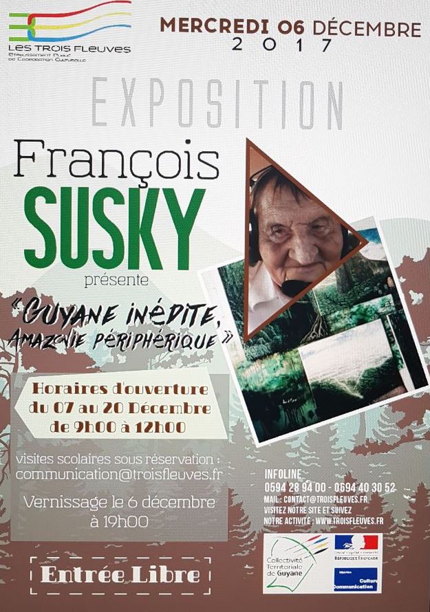 SUSKY c’est avant tout une expérience, celle de l’Amazonie vue du ciel par son auteur, qui vous propose de la revivre avec lui au travers de son documentaire. Récompensé, ce film sera l’objet d’une exposition du 7 au 20 décembre 2017 à l’ENCRE. Le vernissage est ce soir, mercredi 6 décembre 2017 à 20h. Un événement qui comme le film a bénéficié du soutien de la Collectivité Territoriale de Guyane.