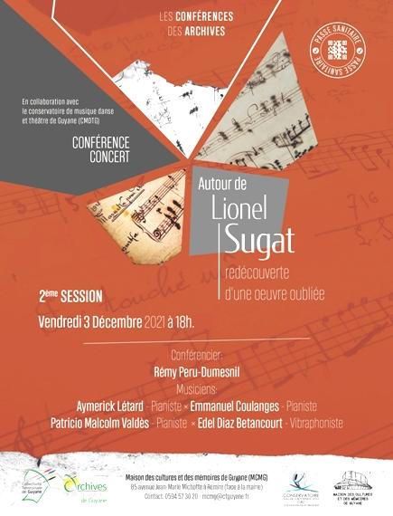 La Collectivité Territoriale de Guyane, à travers les Archives Territoriales de Guyane, organise ce vendredi 3 décembre 2021, une conférence-concert autour de l’œuvre du compositeur guyanais Lionel Sugat en collaboration avec le Conservatoire de Musique Danse et Théâtre de Guyane et l’Université de Guyane, à 18 h, à l’auditorium de la Maison des Cultures et des Mémoires de Guyane.