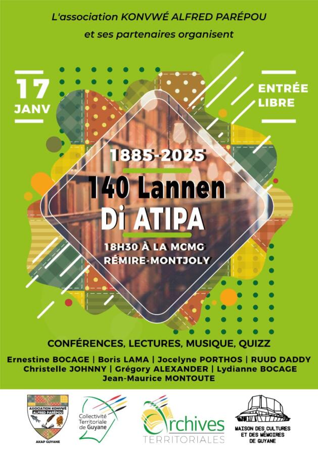 140 ans après la publication du roman « Atipa », l’association « Konvwé Alfred Parépou » organise en partenariat avec la Collectivité Territoriale de Guyane un hommage à son auteur, Alfred Parépou (pseudonyme d’Athénodore Météran), le vendredi 17 janvier 2025, à 18h30 à la MCMG.