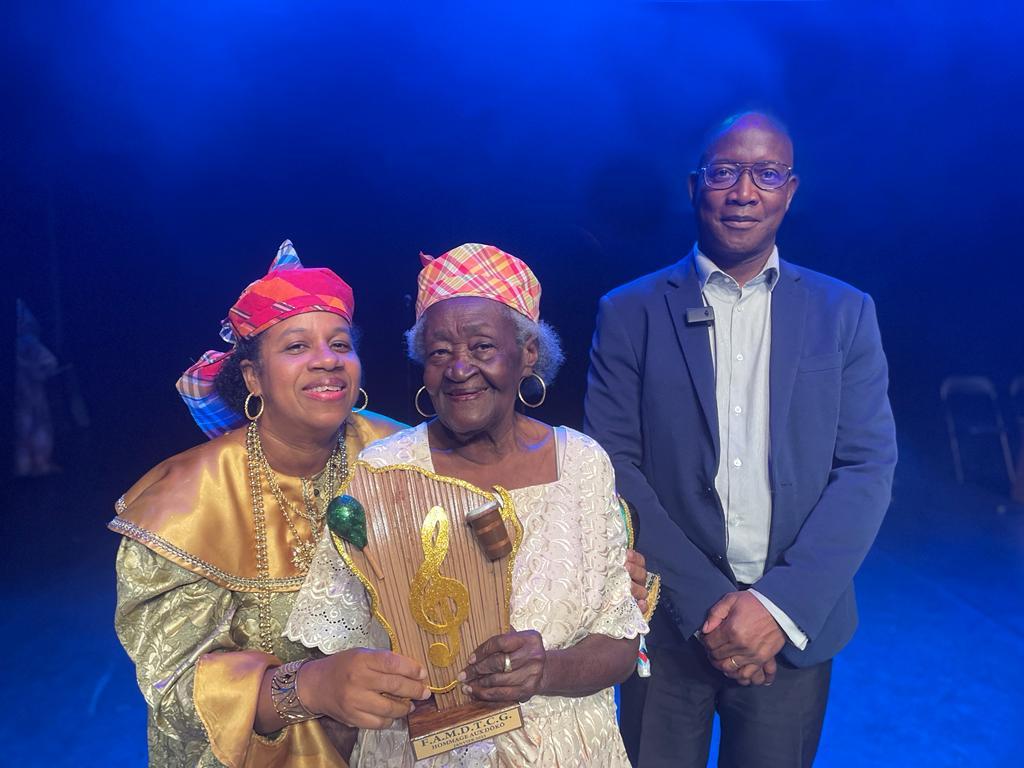 Gabriel Serville, président de la CTG, a participé à cette belle soirée dédiée à célébrer cette grande dame de la culture et de la tradition guyanaise, à la veille de ses 99 ans et Nioussérê Kalala Omotunde, co-fondateur de l’Institut Tarana.