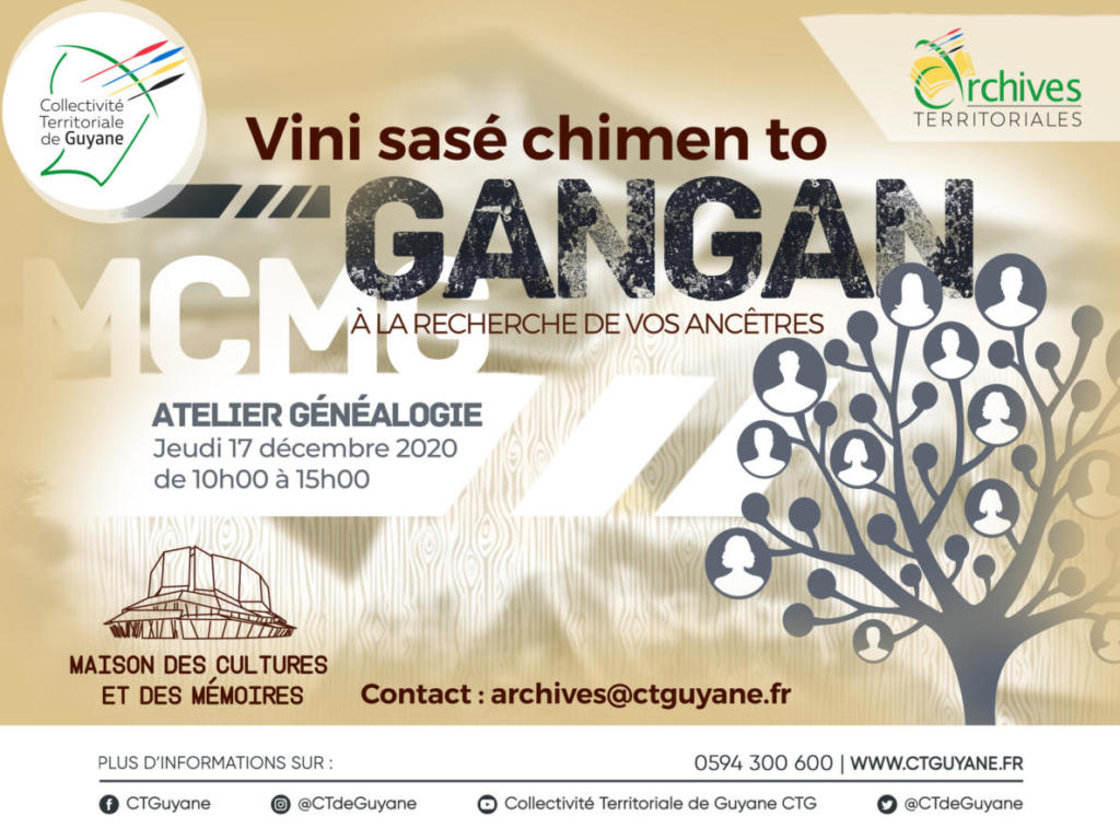 [Culture, Patrimoine] Atelier de généalogie « A la recherche de vos ancêtres –Vini sasé chimen to gangan », Jeudi 17 décembre 2020, de 10h00 à 15h00, à la Maison des Cultures et des Mémoires de la Guyane