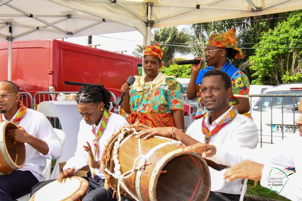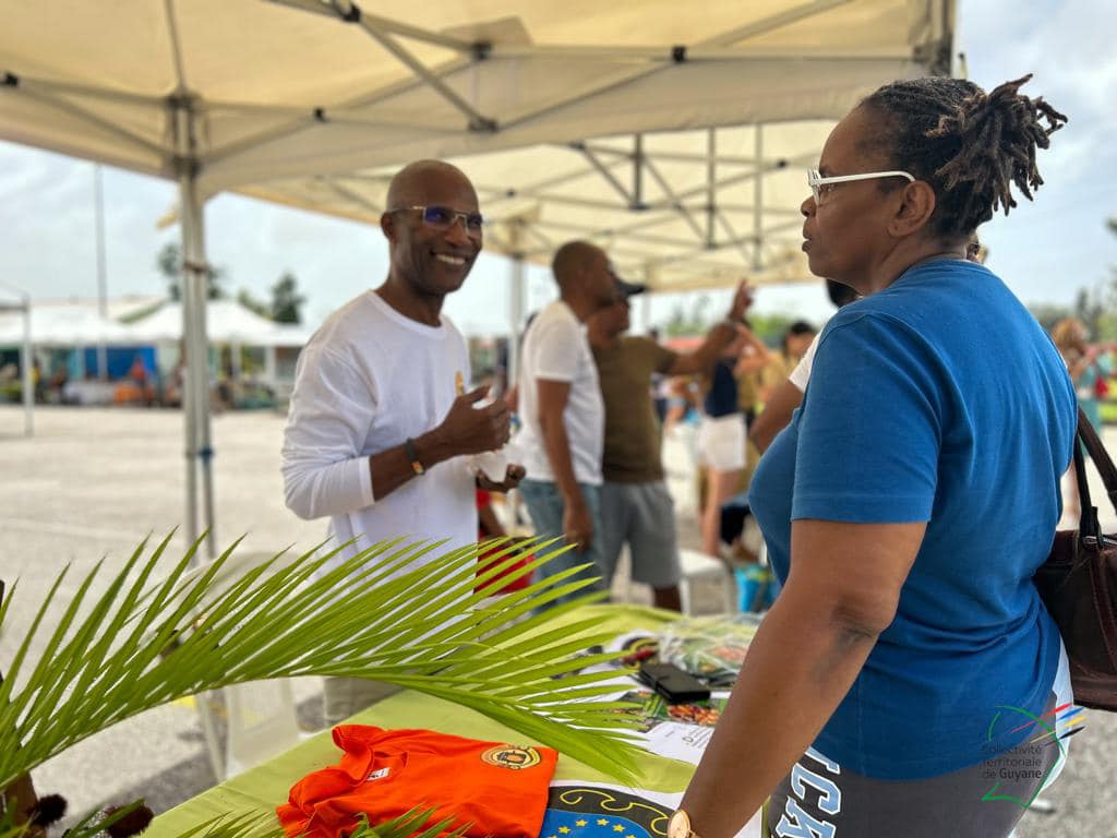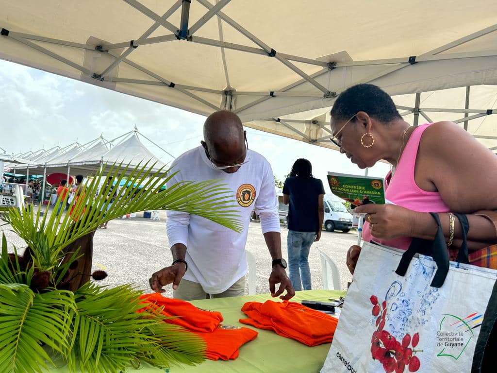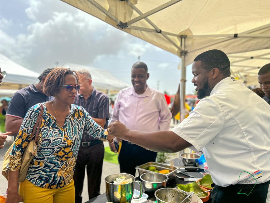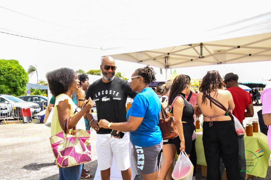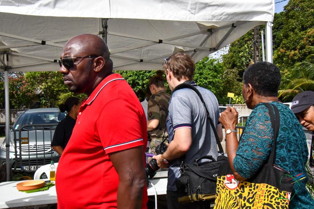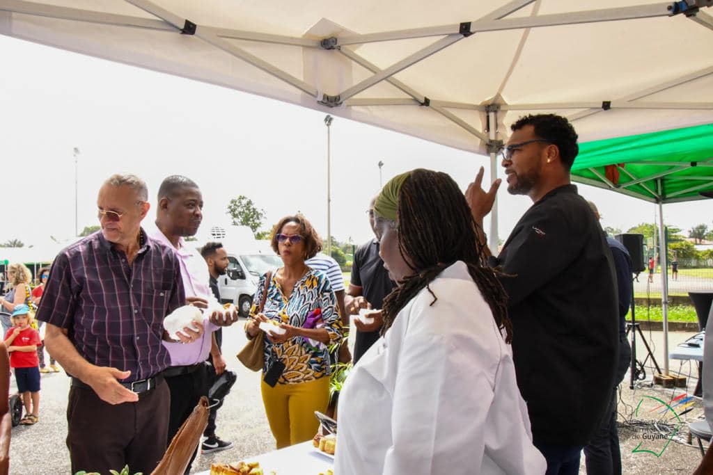 Emmanuel Prince, vice-président délégué à la culture, au patrimoine et à la transmission a fait le tour des stands afin de saluer les acteurs présents, il a également pu échanger avec la Confrérie du Bouillon d’awara et plusieurs élus de la municipalité.