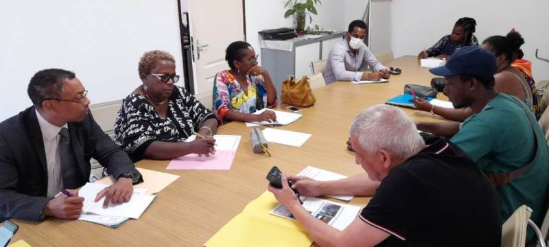 Une rencontre était organisée entre Gabriel Serville, président de la Collectivité Territoriale de Guyane (CTG), et Daisy Sorps, 1ère vice-présidente de la Fédération des Associations de Musiques et Danses Traditionnelles au Tambour Créole Guyanais (FAMDTTCG) représentant sa présidente, Patricia Blérald, en présence de membres de la FAMDTCG et des services techniques de la CTG (Culture, Aménagement et Infrastructure, Moyens Généraux), ce mercredi 6 juillet 2022, au site Chaton de la Collectivité à Cayenne. L’objectif était d’échanger sur l’accompagnement et les projets de la Fédération .
