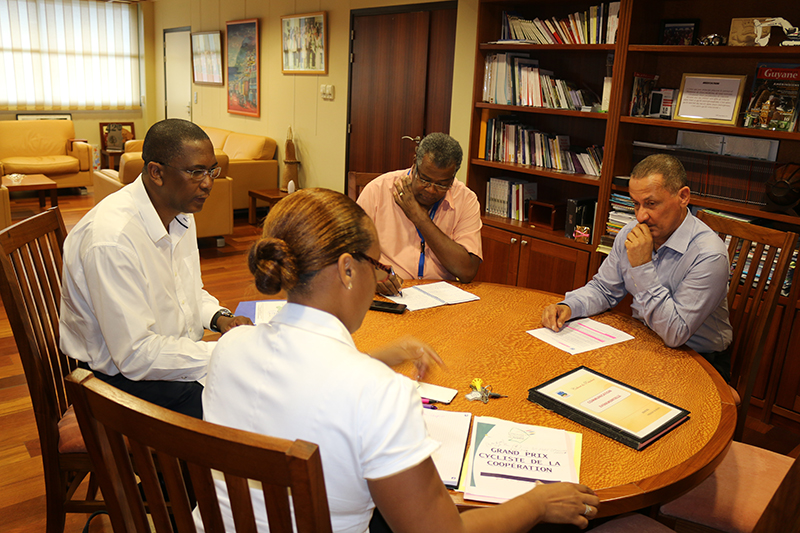 Ce mardi 12 avril 2016, le Président de la Collectivité Territoriale de Guyane, Rodolphe ALEXANDRE, accompagné notamment du 4ème Vice-Président délégué au sport, Jean-Claude LABRADOR, recevait le Président du Comité Régional de Cyclisme de la Guyane, Jean-Yves THIVER, afin de préparer deux des évènements majeurs du calendrier de la saison cycliste : le Grand Prix de la coopération régionale, et le Tour de Guyane.