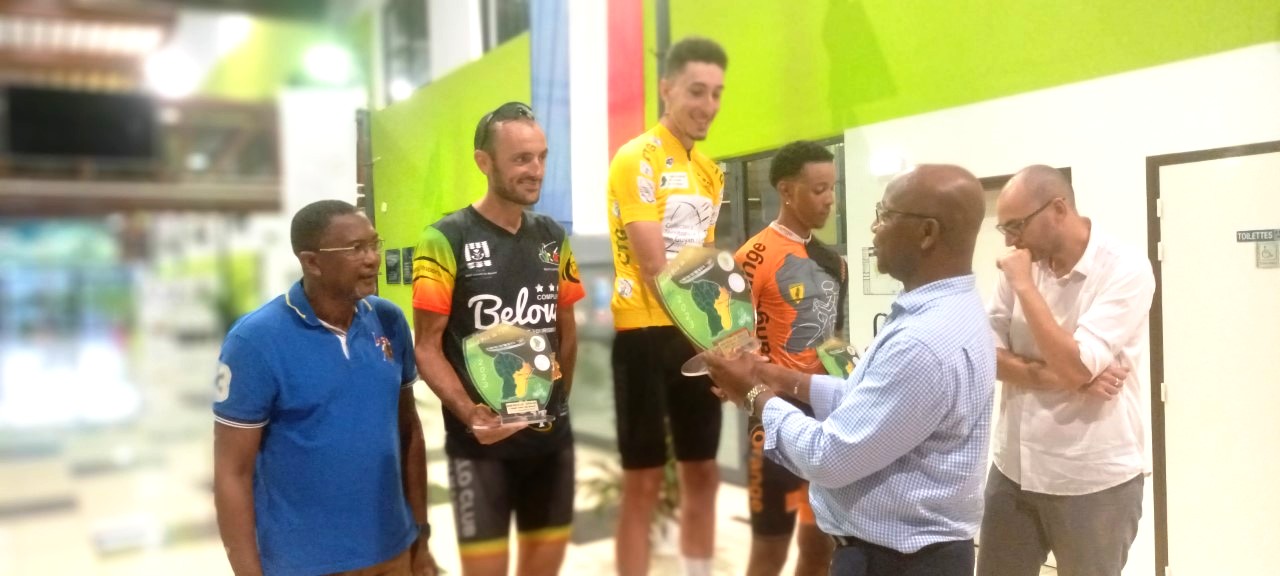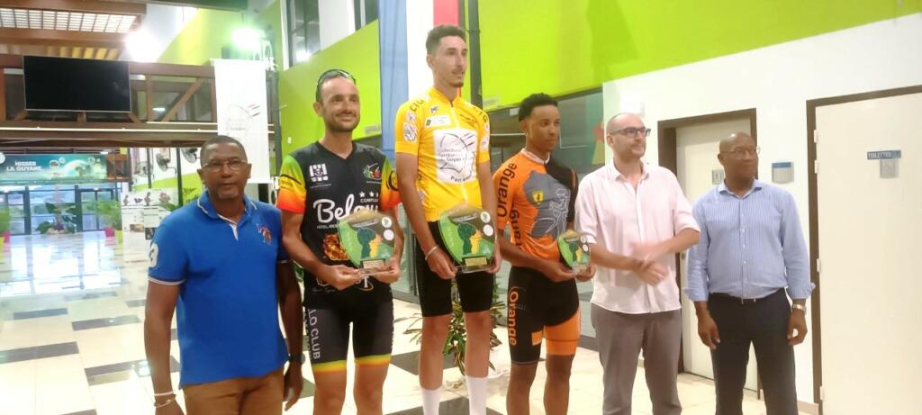 Gabriel Serville, Président de la Collectivité de Guyane, Philippe Bouba 5ème Vice-président de la CTG et Jean-Yves Thiver, Président du CRCG et membre de la Fédération Française de Cyclisme ont procédé à la remise des maillots et des trophées aux coureurs, à l’Hôtel Territorial, en présence de représentants du monde sportif et de nombreux spectateurs et amoureux de la petite reine.