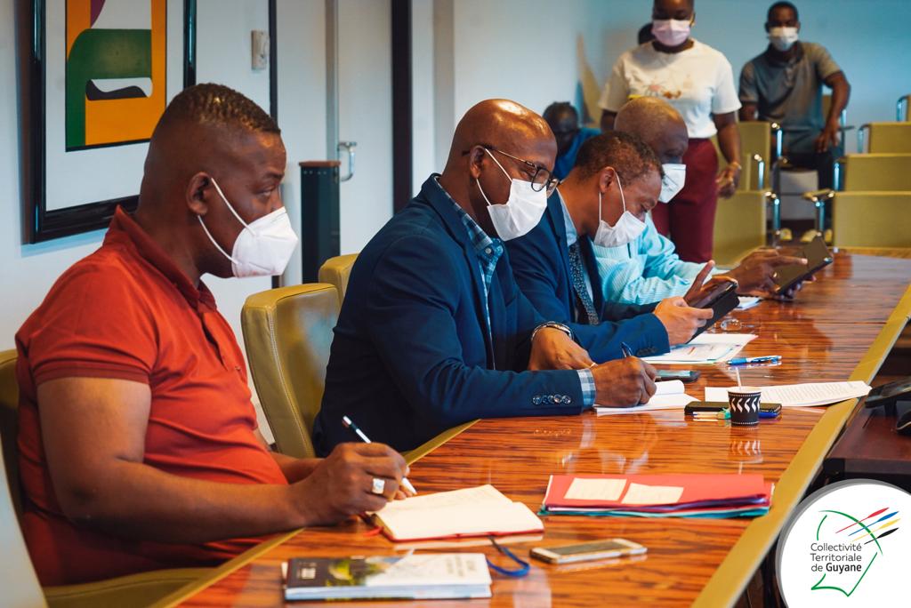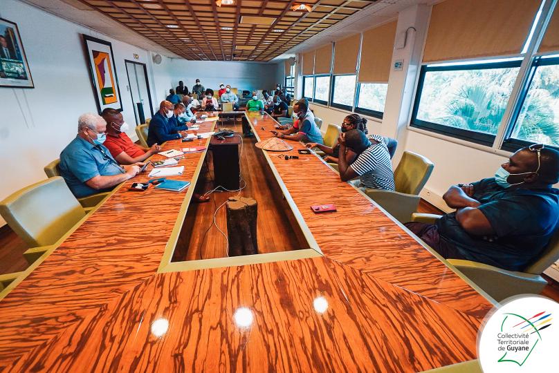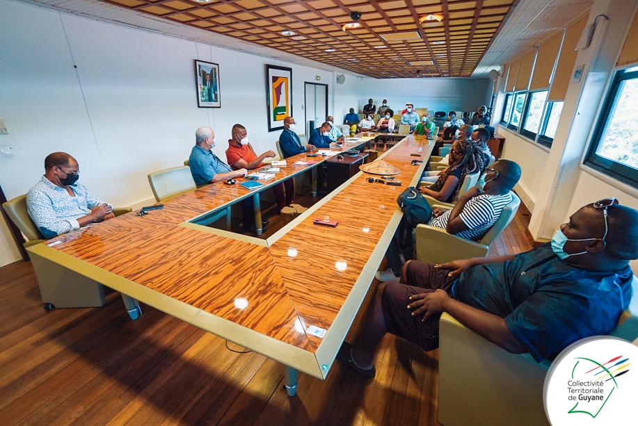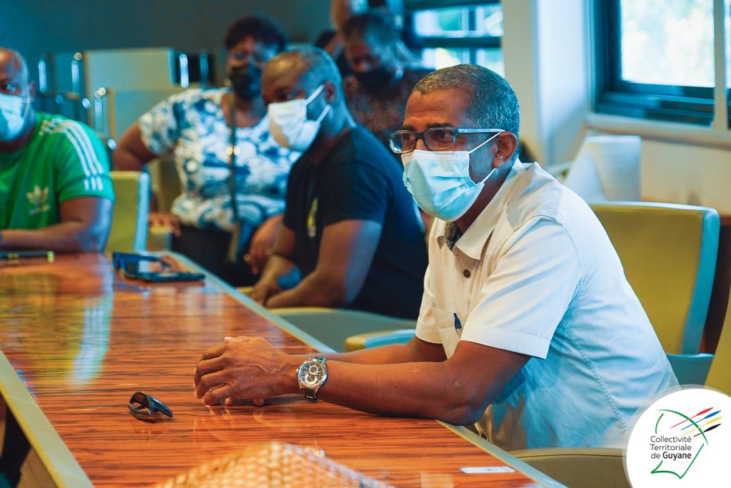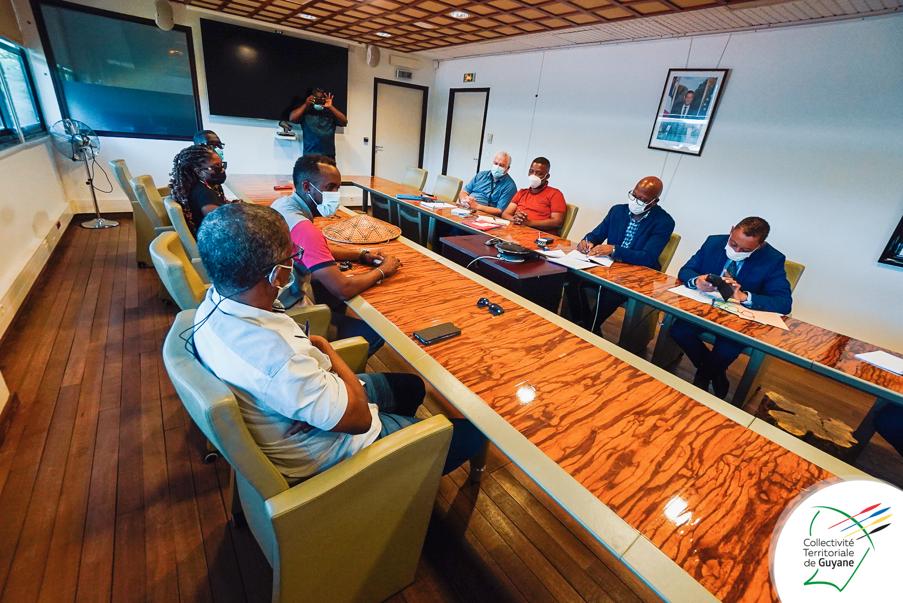 Sollicité par la Caravane de la Liberté, Gabriel Serville, président de la Collectivité Territoriale de Guyane (CTG), a reçu ce vendredi 15 octobre 2021 les membres de la caravane composée entre autres de l’Association Trop Violans et de l’Union des Travailleurs Guyanais (UTG).
