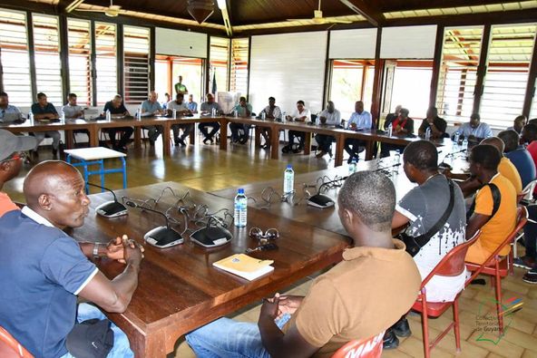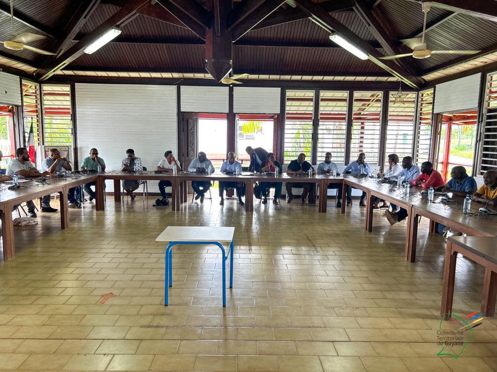 Dans le cadre du déplacement de Gabriel Serville, président de la CTG dans la commune de Maripasoula, une réunion était organisée à la mairie, ce mercredi 31 mai 2023 avec Serge Anelli, maire de la commune, en présence d’une délégation d’élus territoriaux, de techniciens, d’administratifs, d’un représentant de la CCI Guyane, de chefs coutumiers, d’habitants de Maripasoula, de collectifs…