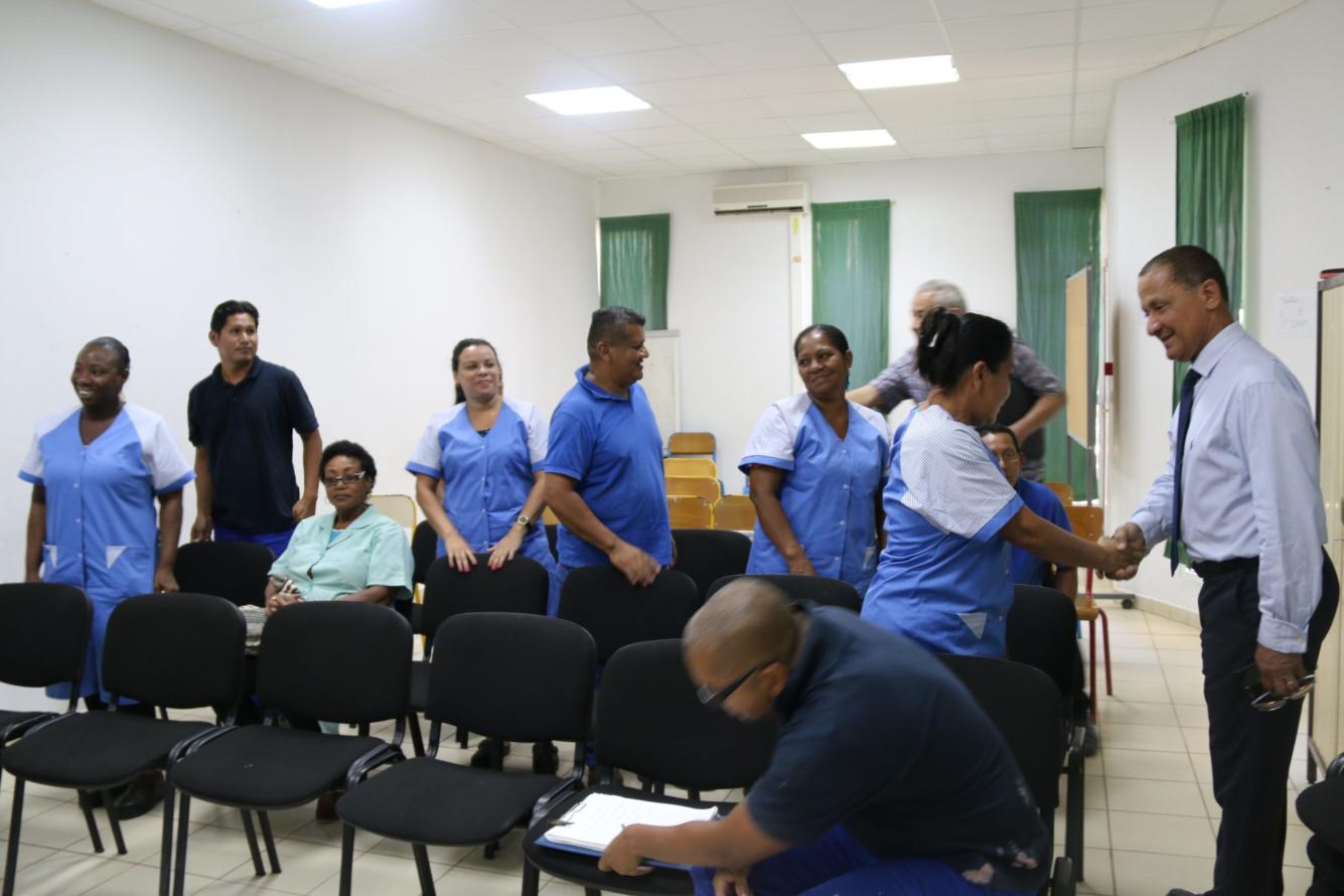 Après ces échanges, les élus de la Collectivité ont tenu à aller sur le terrain, observer les lieux des futurs chantiers à mettre en œuvre et rencontrer mes équipes sur place, indispensables à cette approche territorialisée voulue par la stratégie de la CTG : la PMI, le SDD, le CAIT et le Collège C. Chlore. Cette visite a été l’opportunité de discuter des axes d’amélioration à apporter sur les moyens et les conditions de travail de ce personnel.