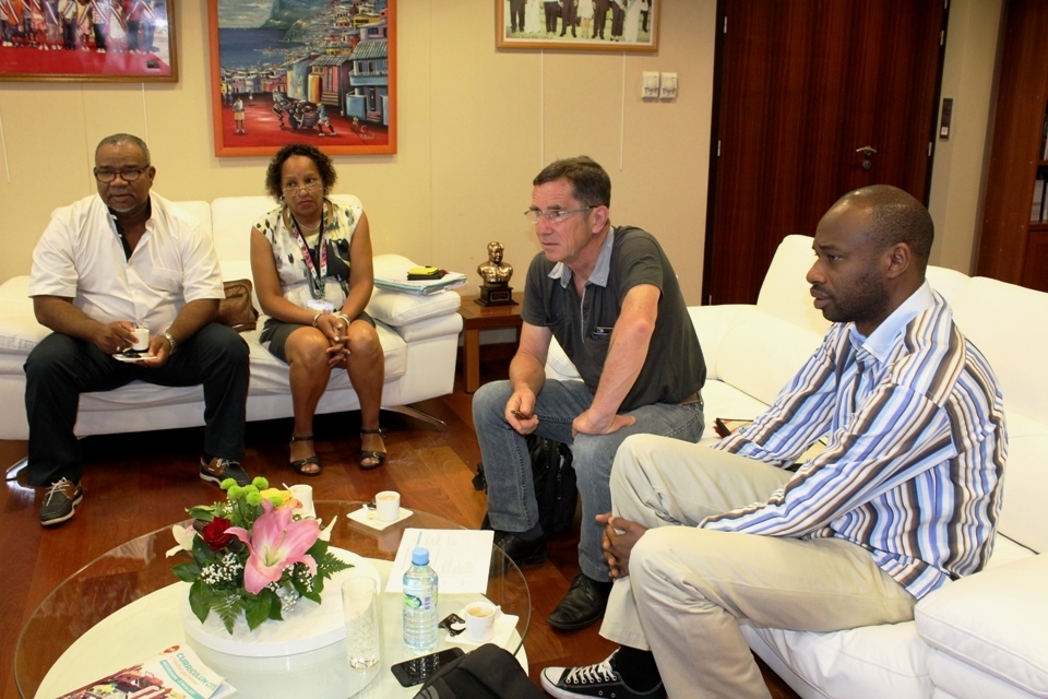 Le secrétaire confédéral CFDT (Confédération Française Démocratique du Travail) délégué aux Outre-mer, Jean-Jacques Manach et le secrétaire  confédéral en charge du Logement et de la Politique de la Ville, Ibrahima Dia poursuivent leur tournée outre-mer. Ce jeudi 16 mars 2017, ils ont été reçus à l’hôtel territorial par le Président de la Collectivité Territoriale de Guyane, Rodolphe Alexandre et sa 3ème Vice-Présidente, Isabelle Patient en présence de représentants de la CDTG (Centrale Démocratique des Travailleurs de Guyane), Daniel Clet et Martine Nivoix.
