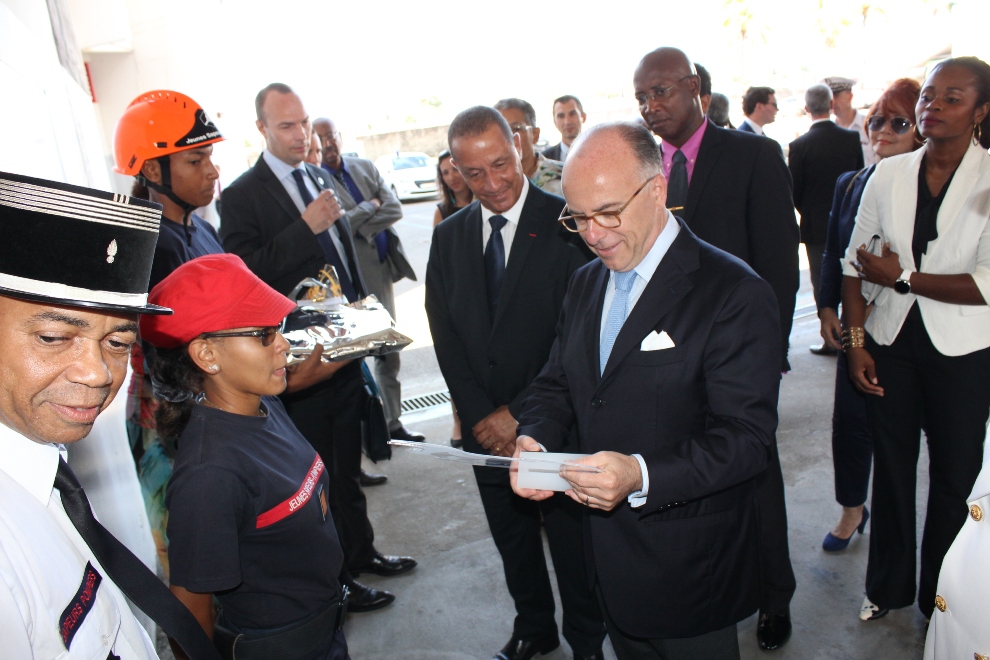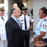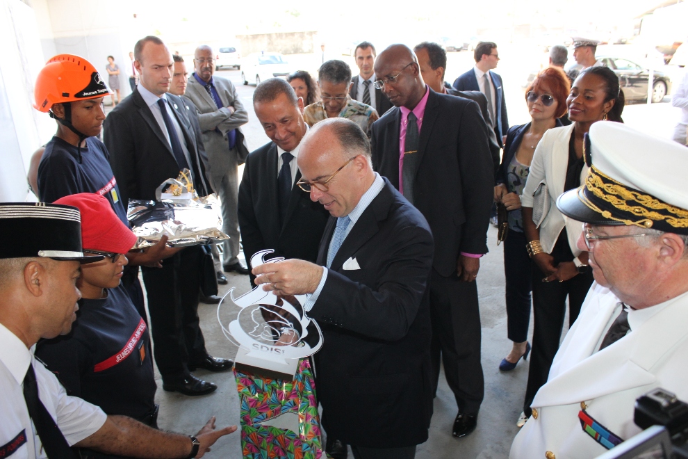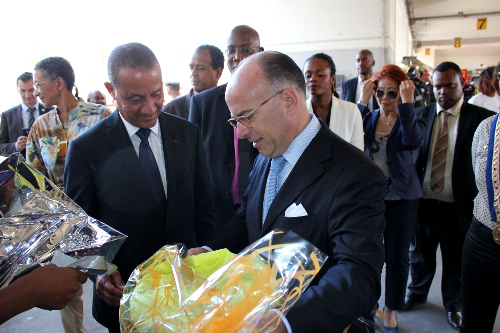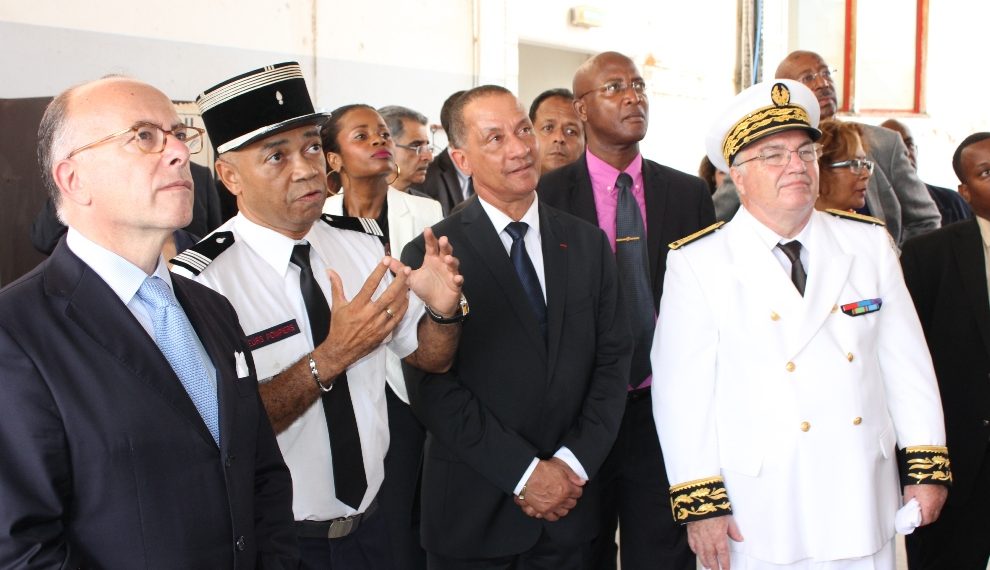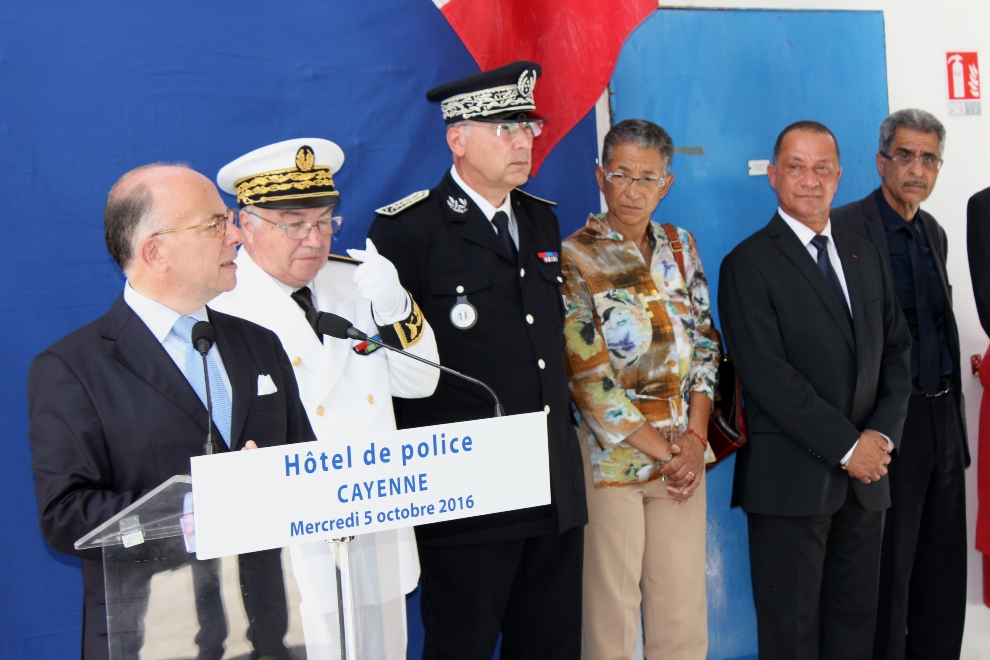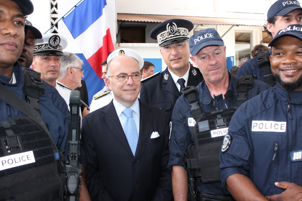 Deuxième jour de visite pour le ministre de l’Intérieur, Bernard Cazeneuve . Accompagné du préfet , du Président de la CTG et d’une forte délégation d’élus, il s’est rendu dans la matinée au Commissariat central de police à l’occasion d’une cérémonie de prise d’armes et remise de décoration à la sureté publique. Différentes annonces ont été faites visant pour le ministre à renforcer la sécurité des Guyanais.