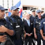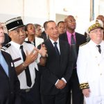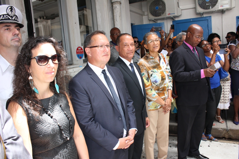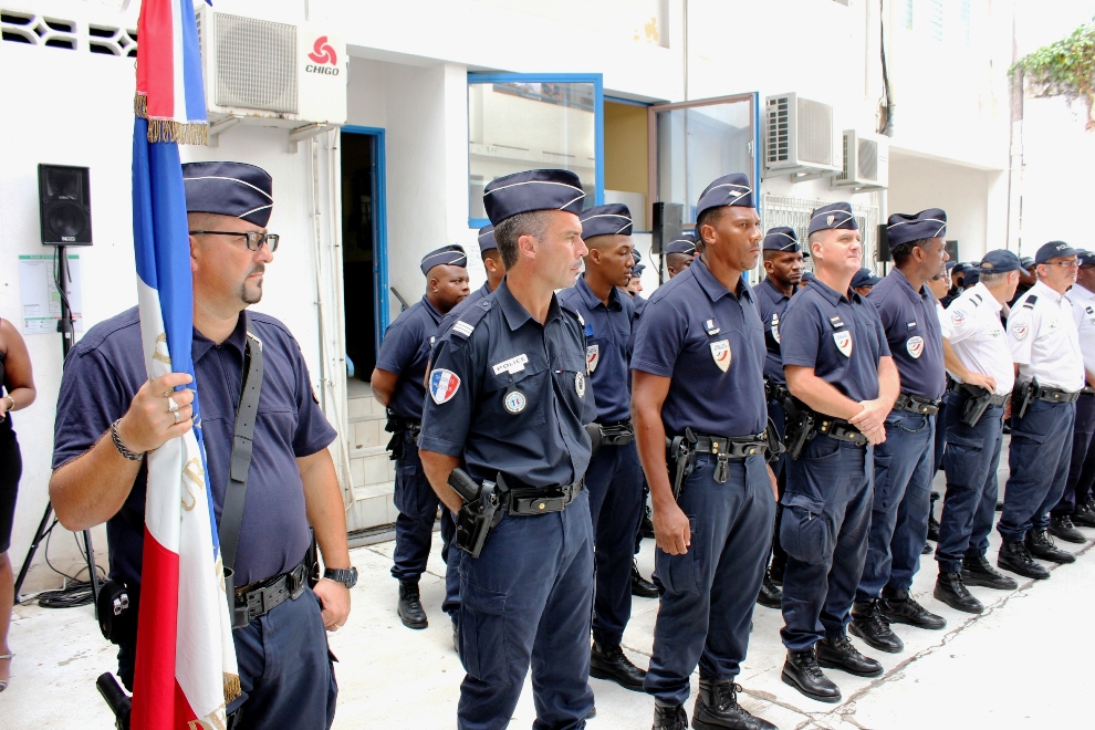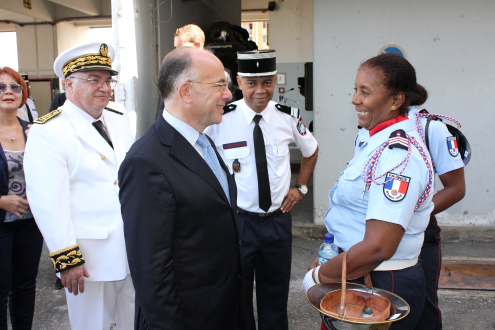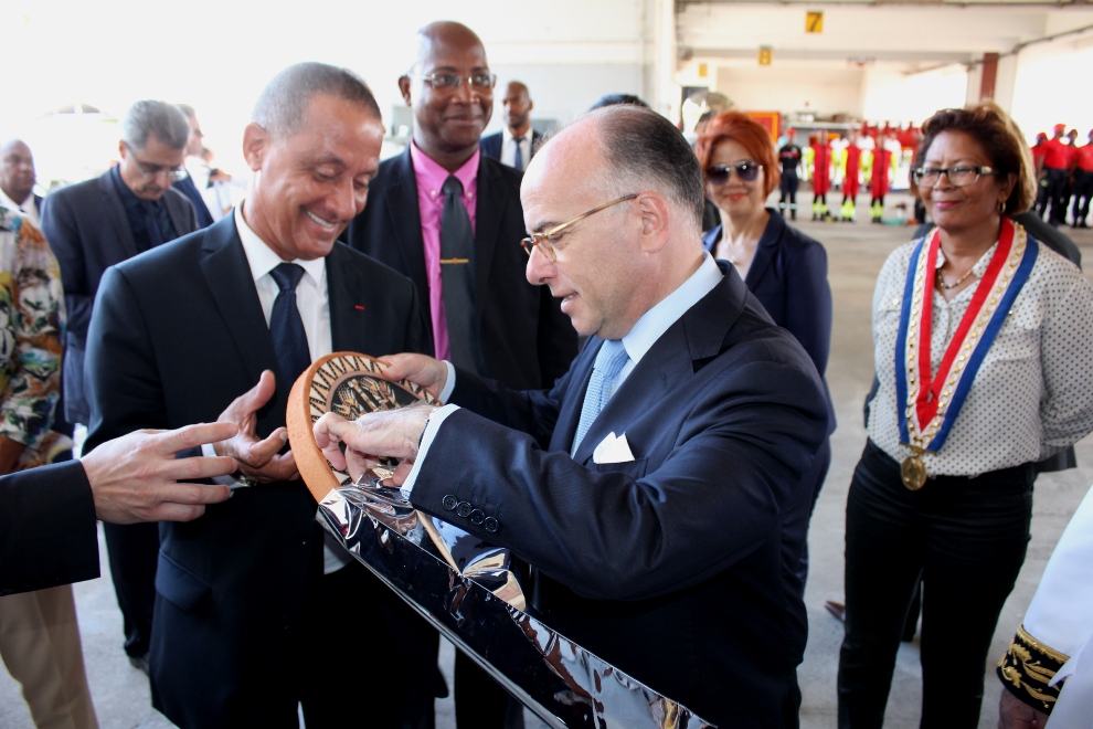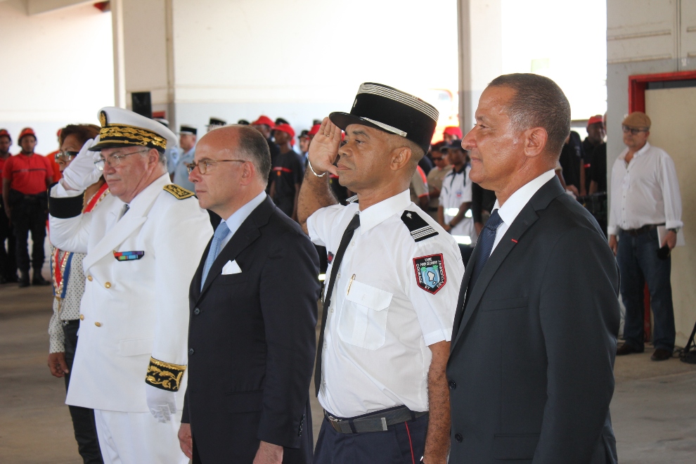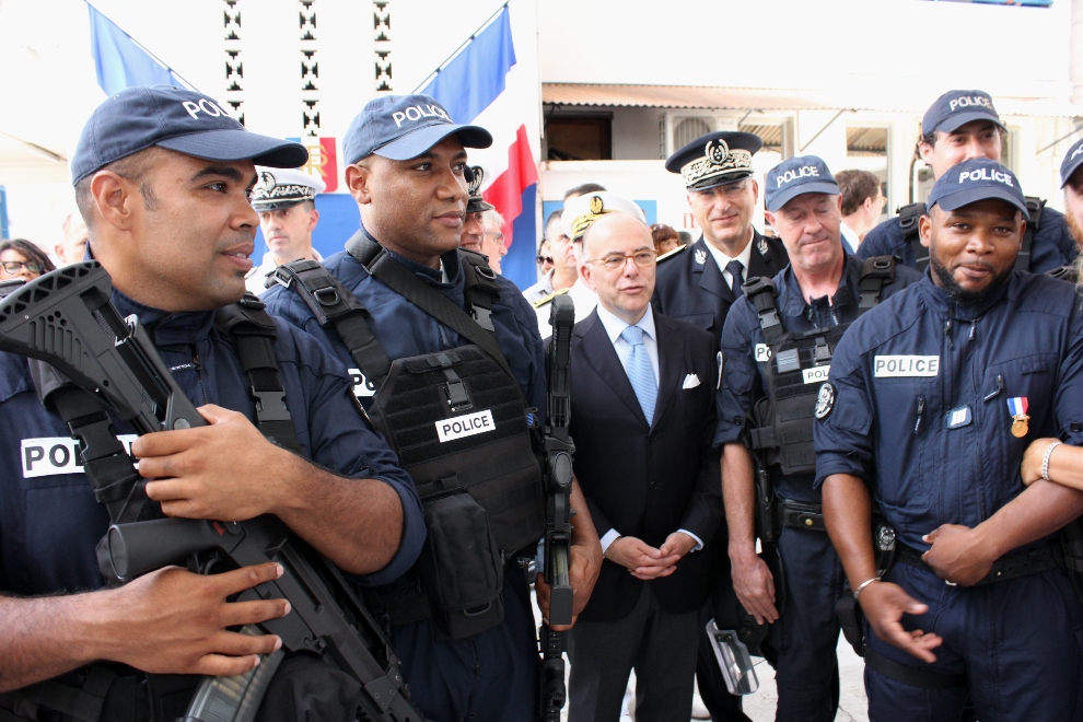 Deuxième jour de visite pour le ministre de l’Intérieur, Bernard Cazeneuve . Accompagné du préfet , du Président de la CTG et d’une forte délégation d’élus, il s’est rendu dans la matinée au Commissariat central de police à l’occasion d’une cérémonie de prise d’armes et remise de décoration à la sureté publique. Différentes annonces ont été faites visant pour le ministre à renforcer la sécurité des Guyanais.