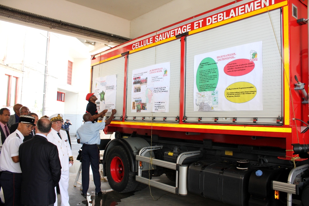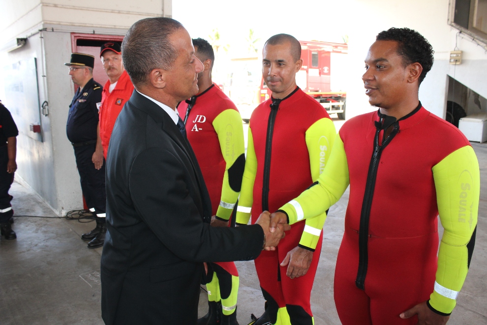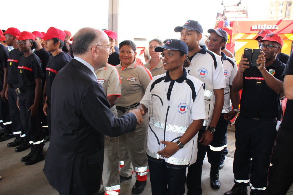 La journée s’est poursuivie par une réunion sur la sécurité à la préfecture en présence de socioprofessionnels, représentants d’associations et du COSEG (Comité de suivi pour plus de sécurité en Guyane). A l’issue de cette rencontre, marquée par une poignée de manifestants, le ministre et la délégation ministérielle se sont rendus au CSP de Cayenne (Centre de secours principal), où Rodolphe Alexandre, en tant que Président du SDIS, les a accueilli.