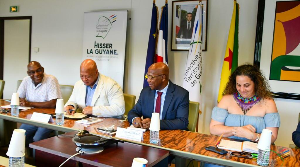 Ce mercredi 5 avril 2023, Gabriel Serville, président de la Collectivité Territoriale de Guyane, rencontrait Florian Raffatin, directeur régional de l’Agence Française de Développement. Jean-Luc Le West, vice-président délégué au développement économique et tourisme, Lucien Alexander, conseiller territorial délégué à la fiscalité et à la performance budgétaire et Violaine Machichi-Prost, conseillère territoriale déléguée à l’économie sociale et solidaire, participaient également à cette rencontre.