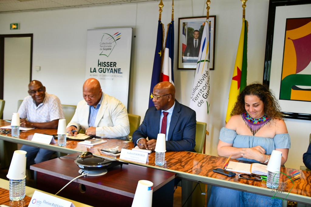 Cette rencontre s’est déroulé dans le cadre de la prise de fonction du directeur et fut l’occasion pour ce dernier de présenter à la CTG les sujets prioritaires pour l’AFD sur le territoire guyanais : l’énergie, la santé (financement du CHC, CHK, CHUG), la mobilité à travers la continuité territoriale et l’éducation.