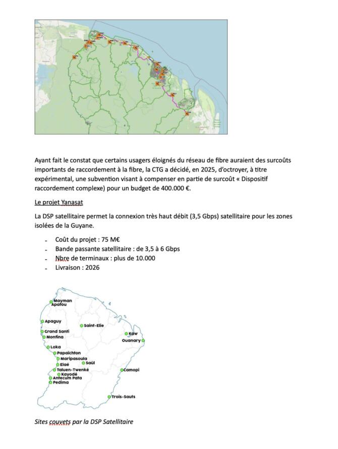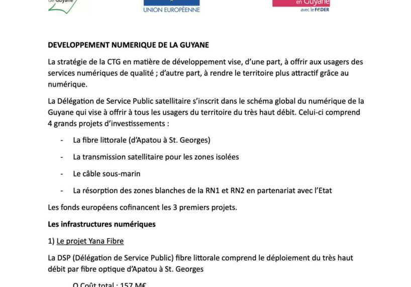 La DSP satellitaire permet la connexion très haut débit (3,5 Gbps) satellitaire pour les zones isolées de la Guyane.
