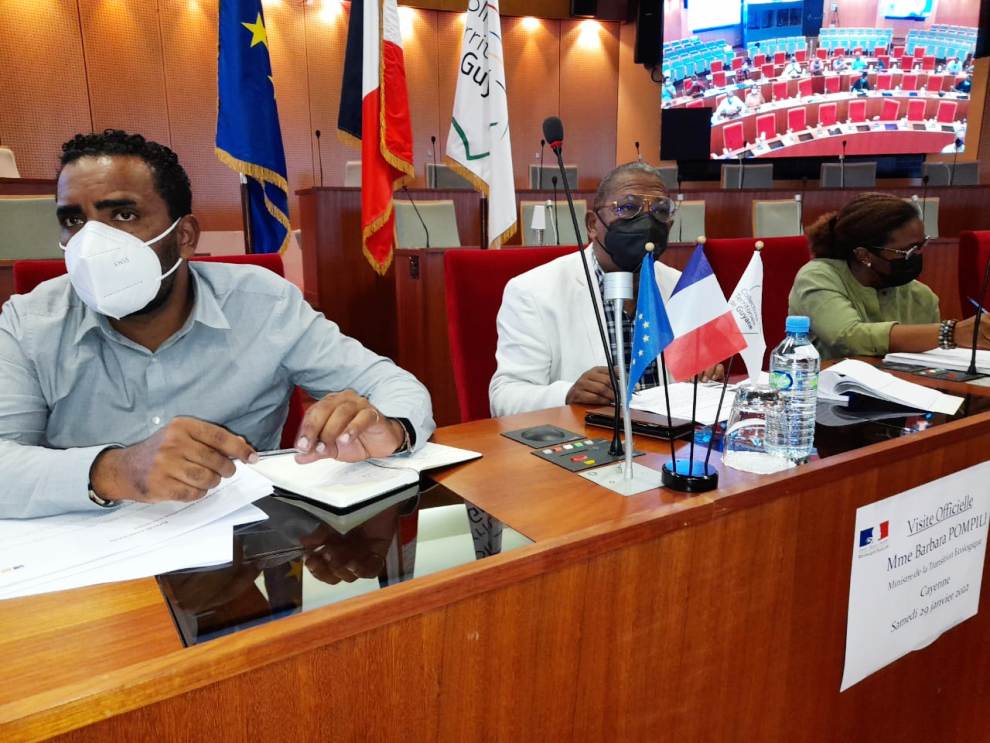 Roger Aron, 7è vice-président de la Collectivité Territoriale de Guyane (CTG), en charge de l’Agriculture, la Pêche, la Souveraineté Alimentaire et l’Évolution Statutaire a assisté, ce mardi 1 février 2022, à la présentation de la révision du Schéma Régional de Développement de l’Aquaculture en Guyane dans la salle des délibérations de l’Hôtel Territorial à Cayenne en présence de représentants des Services de l’État, de la filière aquacole et du Comité Régional des Pêches Maritimes (CRPM).
