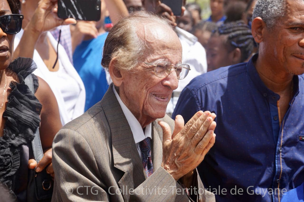 En 2018, nous avions érigé, en son honneur, une statue conçue par l’artiste Abel Adonaï dans l’établissement scolaire éponyme, situé à Cayenne. Je lui avais alors remis, avec une grande émotion, la médaille d’honneur de la Collectivité Territoriale de Guyane, saluant une fois de plus la figure emblématique de l’éducation et des cultures guyanaises qu’il était.