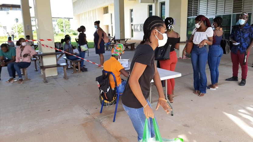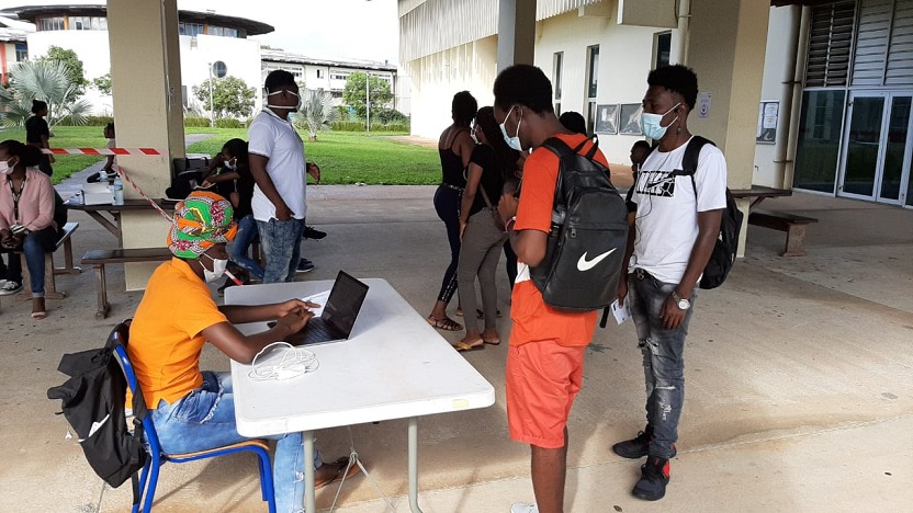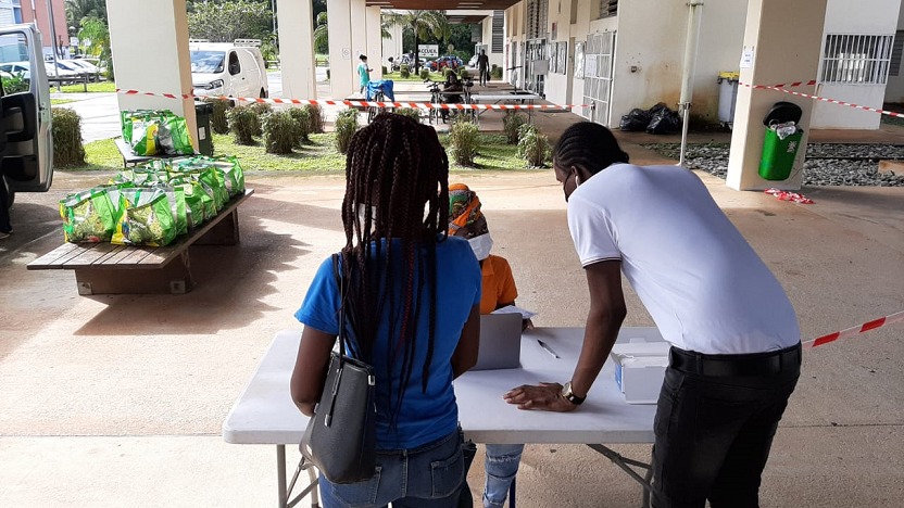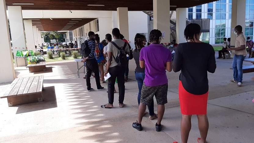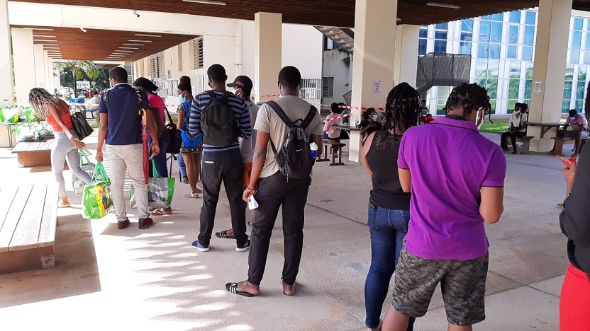 Suite aux sollicitations de l’Université de Guyane et du CROUS et dans la continuité du dispositif d’aide alimentaire aux étudiants initié en 2020 par la Collectivité Territoriale de Guyane (CTG), une distribution de denrées alimentaires et de chèques restaurant était organisée ce lundi 17 mai 2021 à destination des étudiants, au Campus Universitaire.