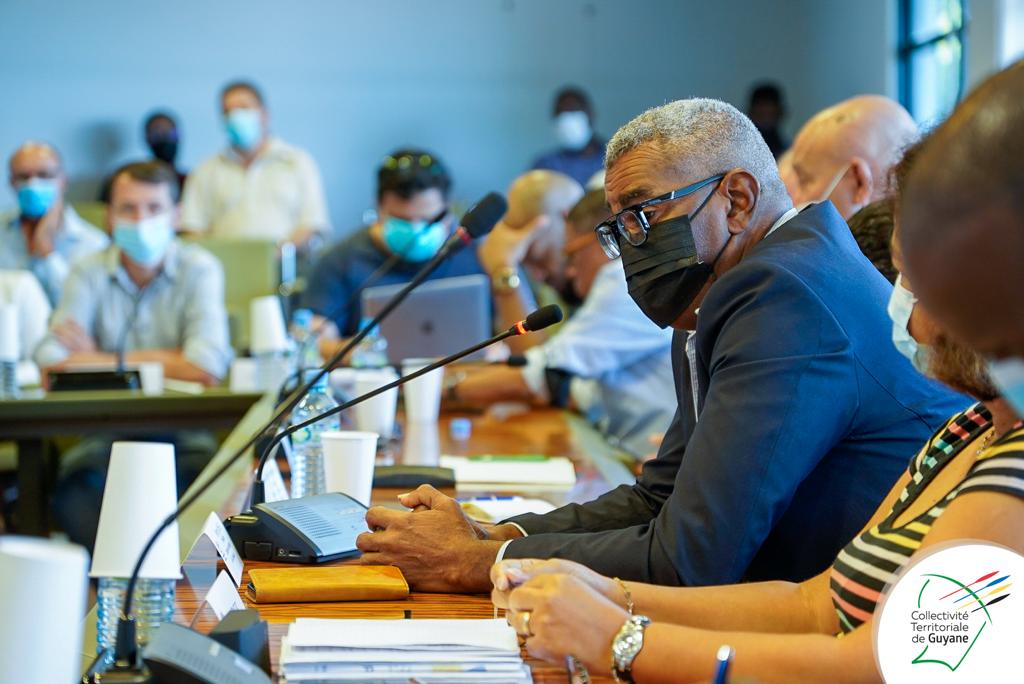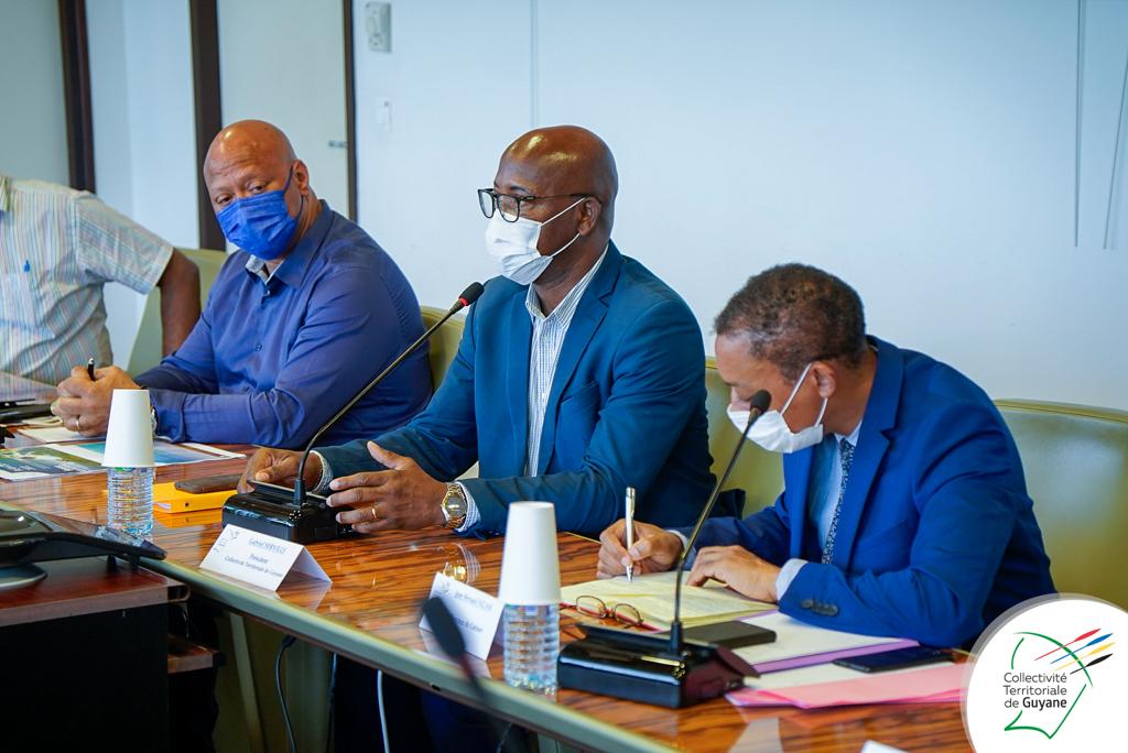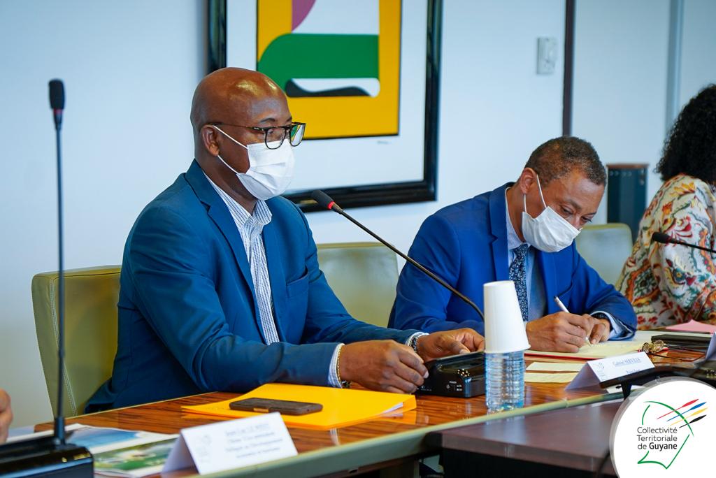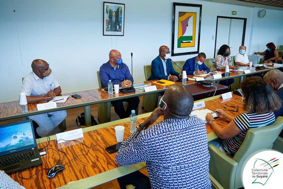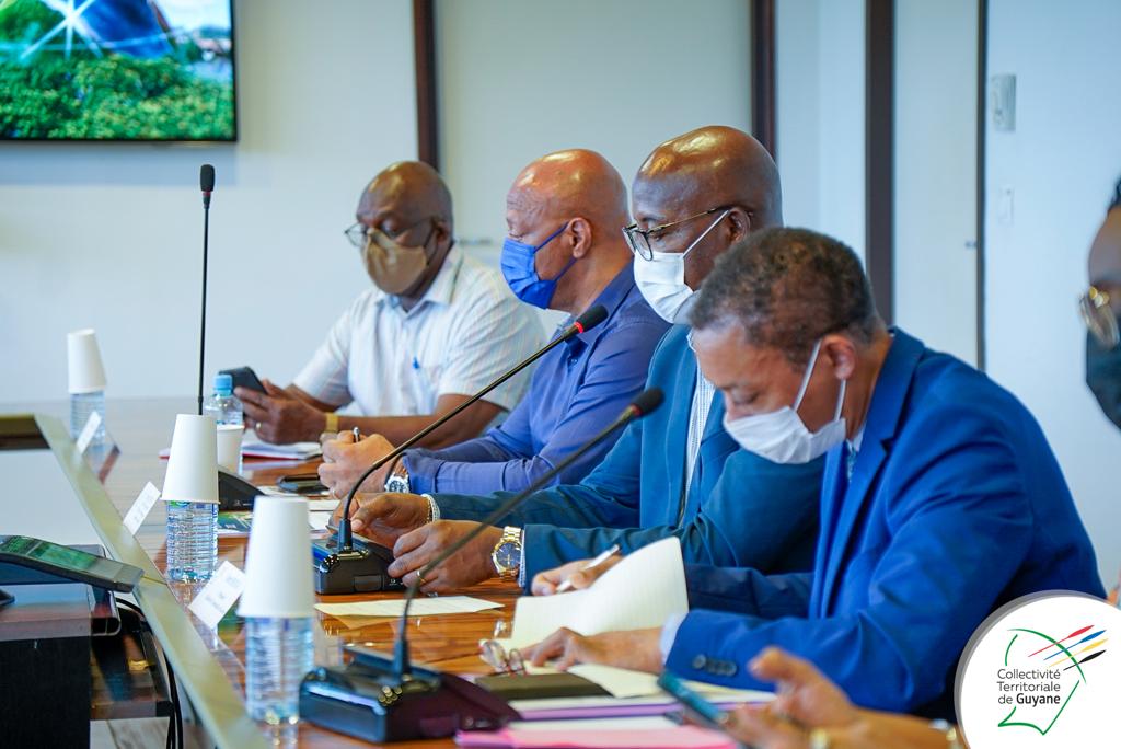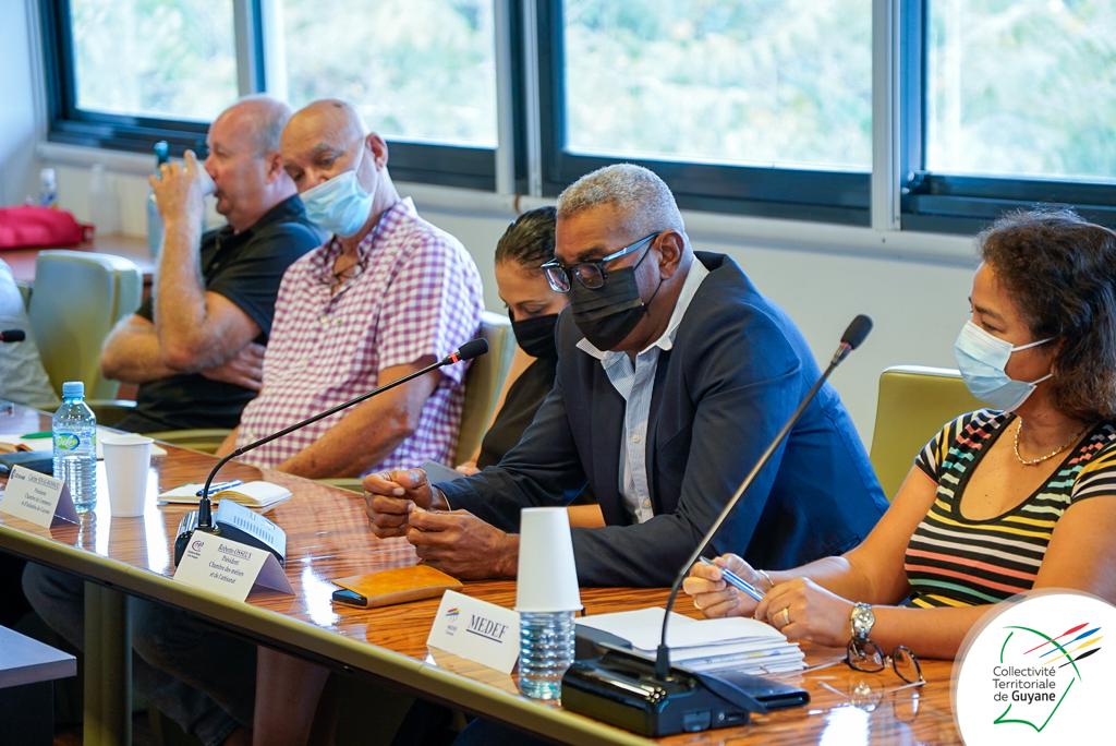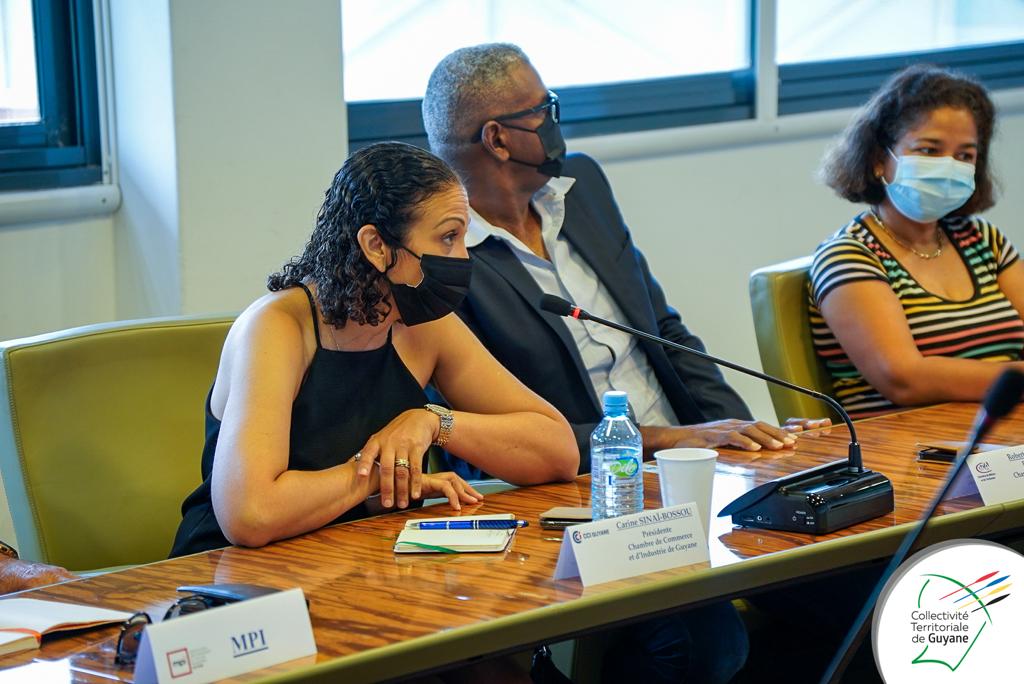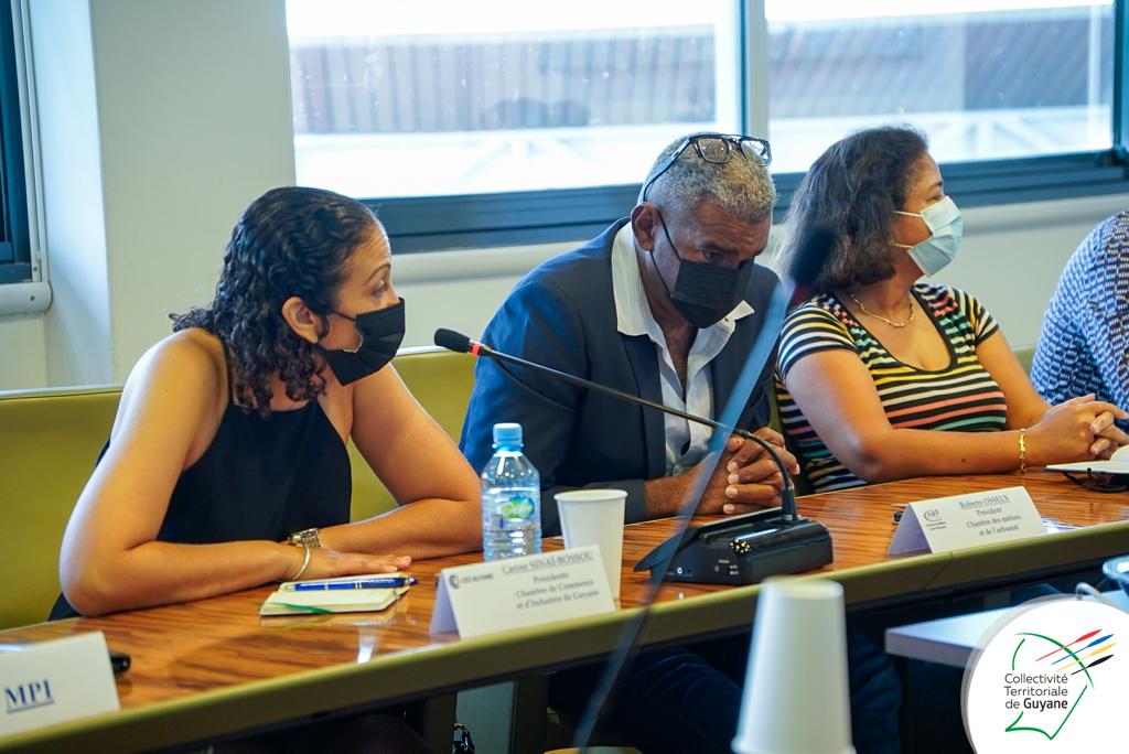Suite à une première rencontre avec les banques et les établissements financiers, Gabriel Serville, président de la Collectivité Territoriale de Guyane, Jean-Luc Le West, 13ème vice-président délégué au développement économique et au tourisme, et Christiane Barbe, conseillère territoriale déléguée à l’Agroalimentaire, ont reçu ce mardi 19 octobre 2021 les acteurs du monde économique.