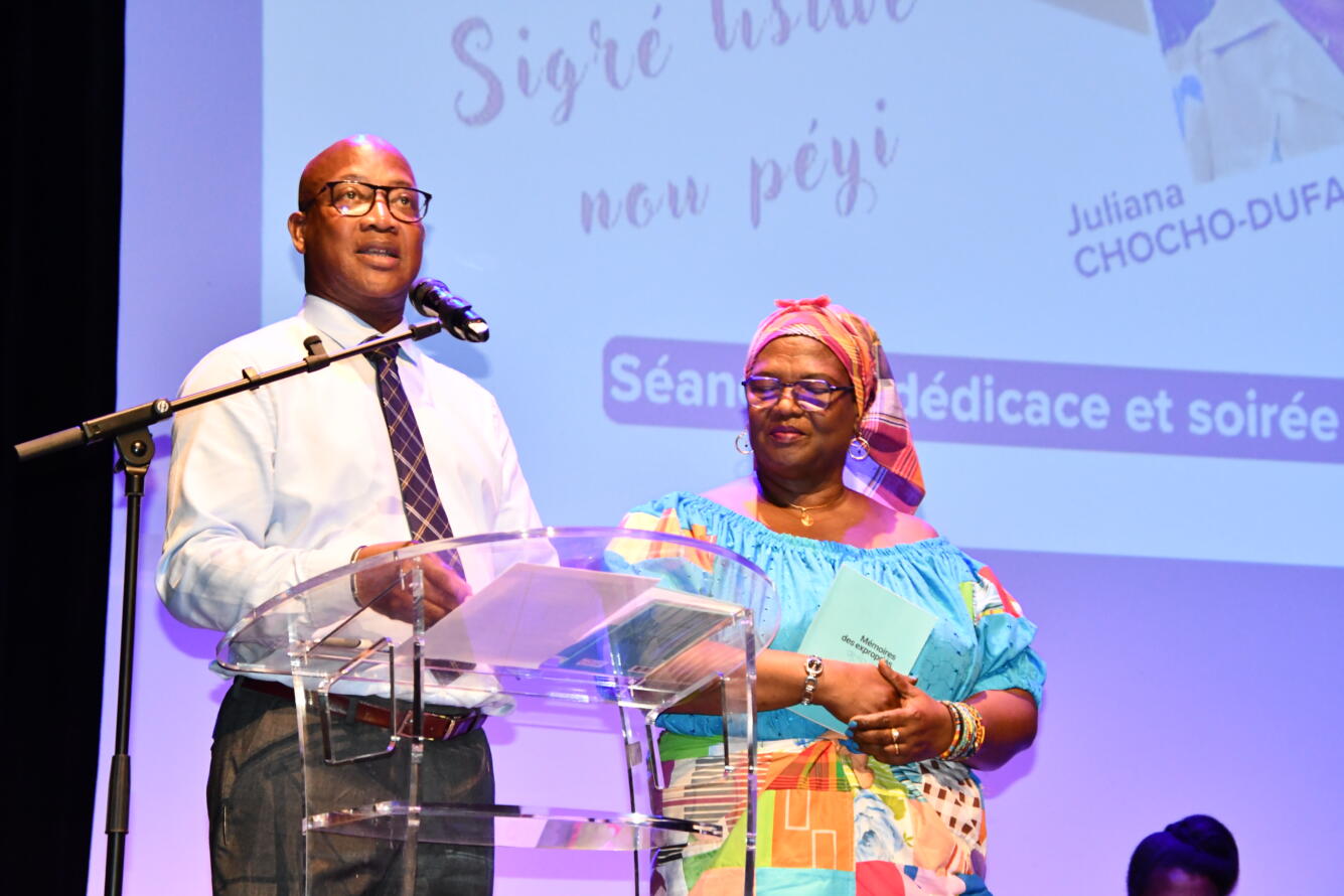A l’occasion de la Rencontre Littéraire organisée par la Collectivité Territoriale de Guyane (CTG) avec le concours de la Direction Territoriale du Livre et de la Lecture à l’Encre, Juliana Chocho-Dufail a présenté son dernier ouvrage intitulé « Mémoires des Expropriés de Kourou et de Sinnamary », ce jeudi 7 décembre 2023 à l’Ensemble Culturel Régional (ENCRE) avant de débattre avec le public autour de ce pan cruel et inhumain de la conquête spatiale en Guyane, en présence de Gabriel Serville, Président de la CTG, Christiane Taubira, ex ministre de la Justice et Garde des Sceaux, Lucien Alexander conseiller territorial en charge de la Fiscalité et Performance budgétaire, l’ex sénateur de la Guyane, Antoine Karam et de nombreux invités.