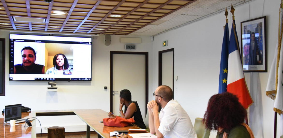 Plusieurs élèves et professeurs participaient à ces échanges à distance, en présence de Philippe Bouba, 5è vice-président délégué à l’enseignement supérieur et à la recherche et de Muriel Briquet, conseillère territoriale déléguée à la jeunesse et à la vie associative, tous deux membres du jury. L’objectif ? Une présentation des projets et un échange avec le jury.