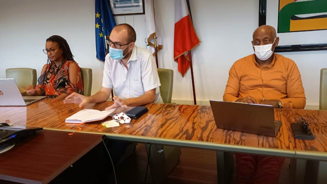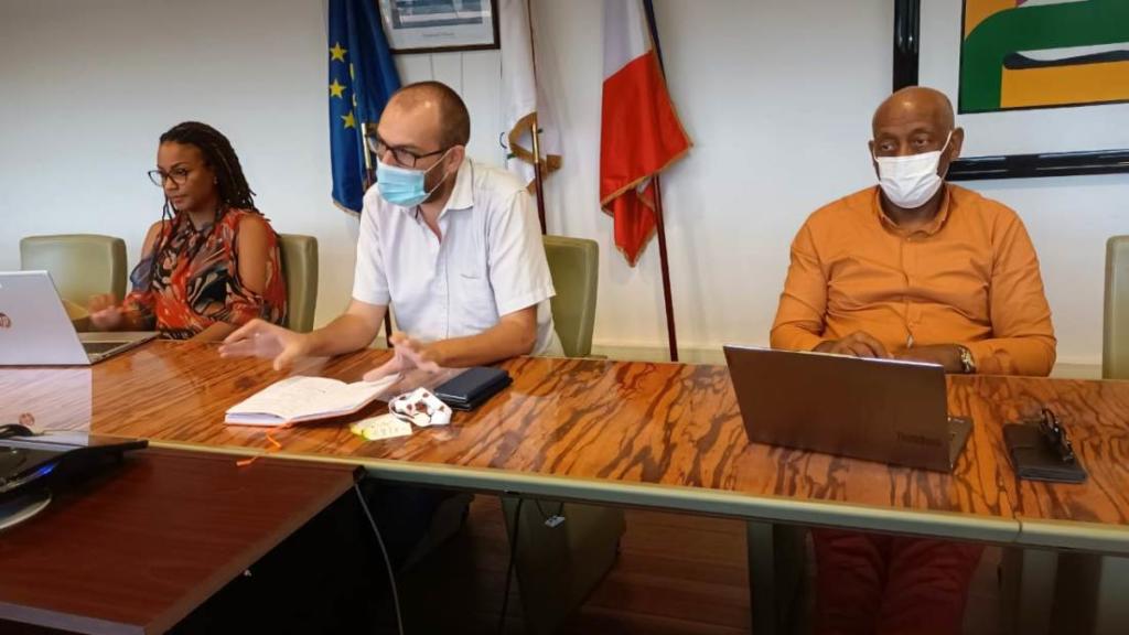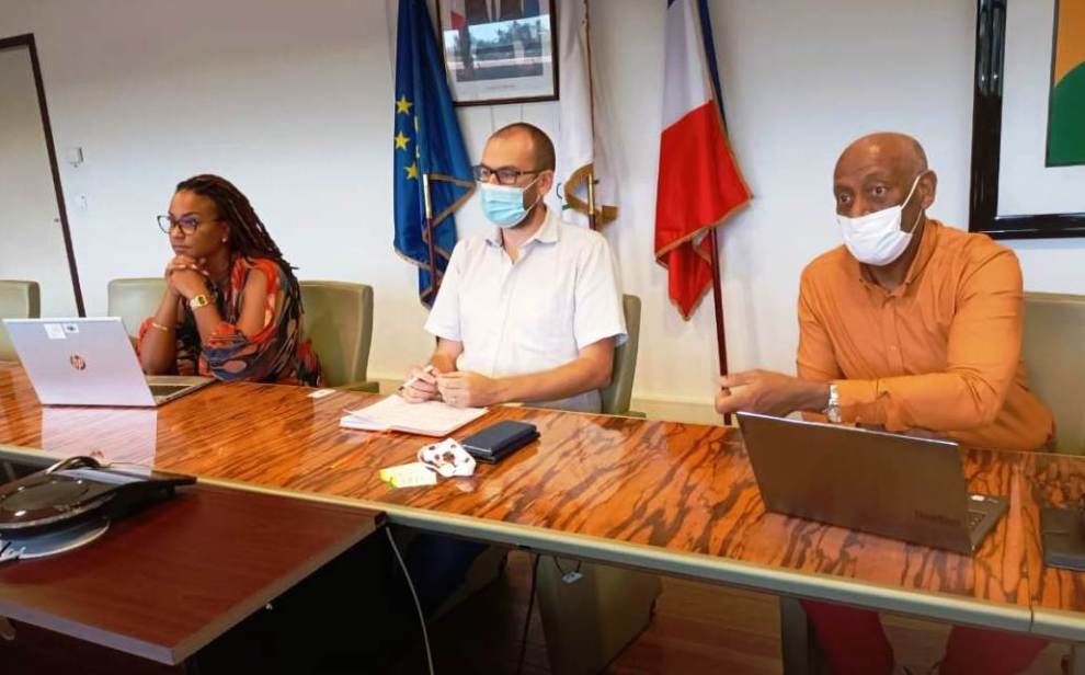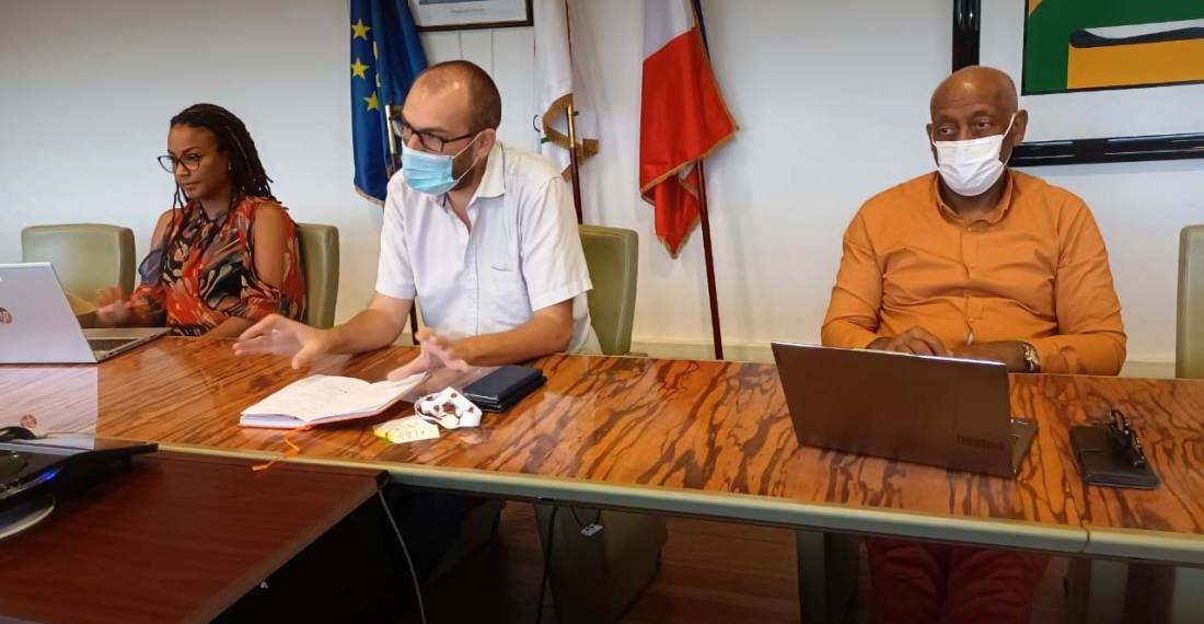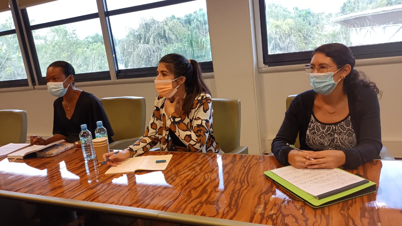 Ce mercredi 6 avril 2022 a eu lieu une rencontre entre Philippe Bouba, 5ème Vice-président de la Collectivité Territoriale de Guyane (CTG) délégué à l’Enseignement supérieur et à la Recherche, et une délégation de l’Unité de Recherche des Sciences Humaines et Sociales MINEA (Migrations, Interculturalité et Education en Amazonie) de l’Université de Guyane composée de Carole Hassoun, enseignant chercheur et Maître de conférence, et Isabel Travecedo, directrice adjointe de ce laboratoire et enseignant chercheur, conduite par sa directrice Mylène Danglades, maître de conférence de l’Université de Guyane, à l’Hôtel Territorial à Cayenne.