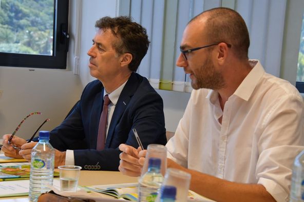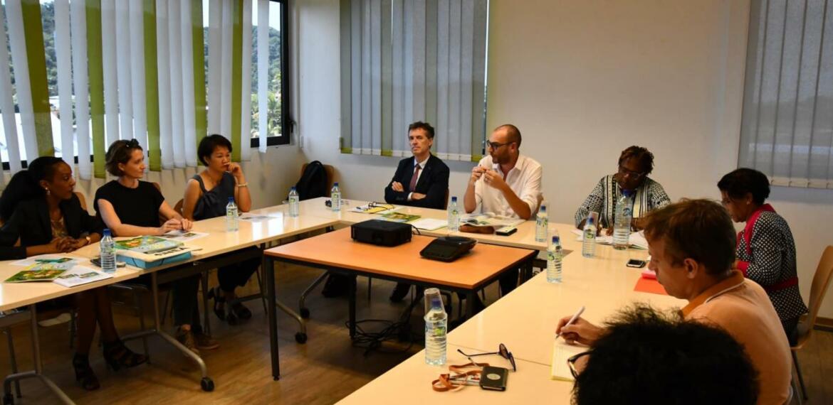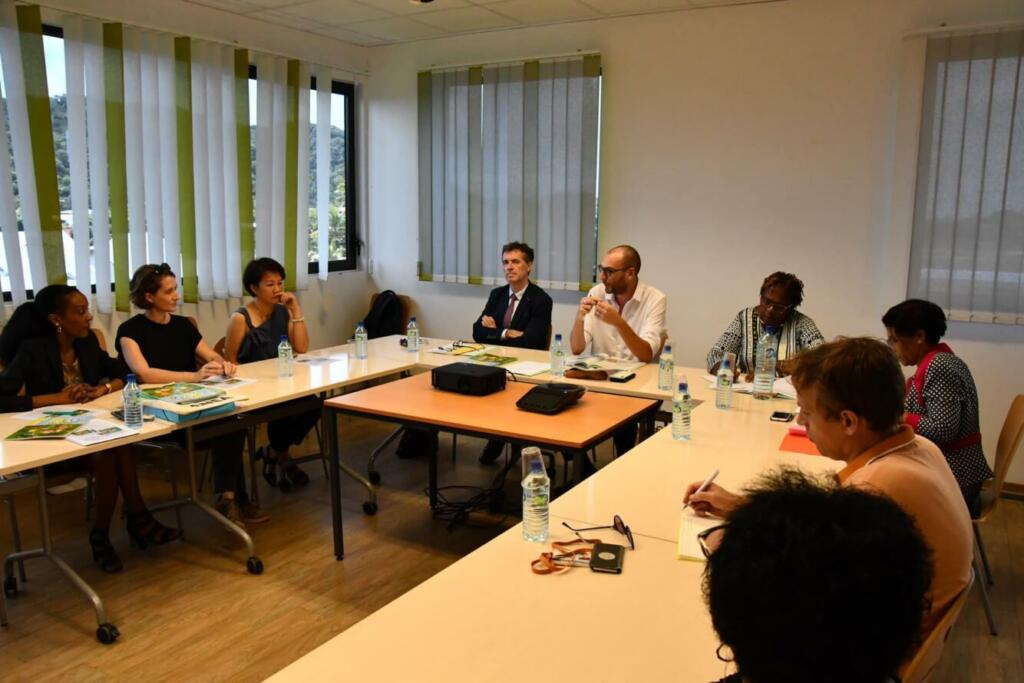 À quelques semaines de la parution officielle du manuel de géographie de Guyane à destination des élèves de classes de CM1 et CM2, Philippe Bouba, 5ème vice-président délégué à l’enseignement supérieur et à la recherche et Philippe Dulbecco, recteur de la région académique de Guyane, rencontraient les auteures, Audrey Chambaud-Régnier et Emily Sollet Markour, accompagnées de Suzie Lan, directrice de la maison d’édition Plume Verte, ce mardi 23 mai 2023.