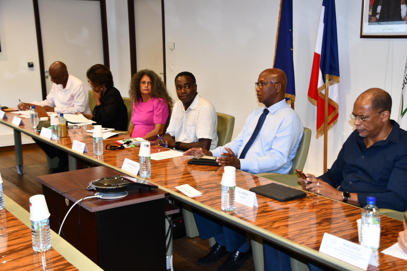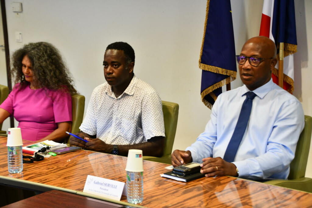 Gabrielle Serville rencontrait Emmanuel Octavie, Secrétaire Général du SE-UNSA Guyane ce lundi 28 août 2023, en présence de Laetitia Fillodeau et Ingrid Mencé, secrétaires académiques et de Marie-Lucienne Rattier, Isabelle Vernet et Chester Léonce, élus territoriaux, sur la situation de l’éducation en Guyane. Les questions relatives à l’aménagement du territoire, son attractivité mais également à l’enclavement aérien et à la continuité territoriale ont été abordées. À quelques semaines de la rentrée scolaire, figuraient également au cœur des discussions la question des conditions d’accueil au sein des établissements et le déficit d’enseignants.