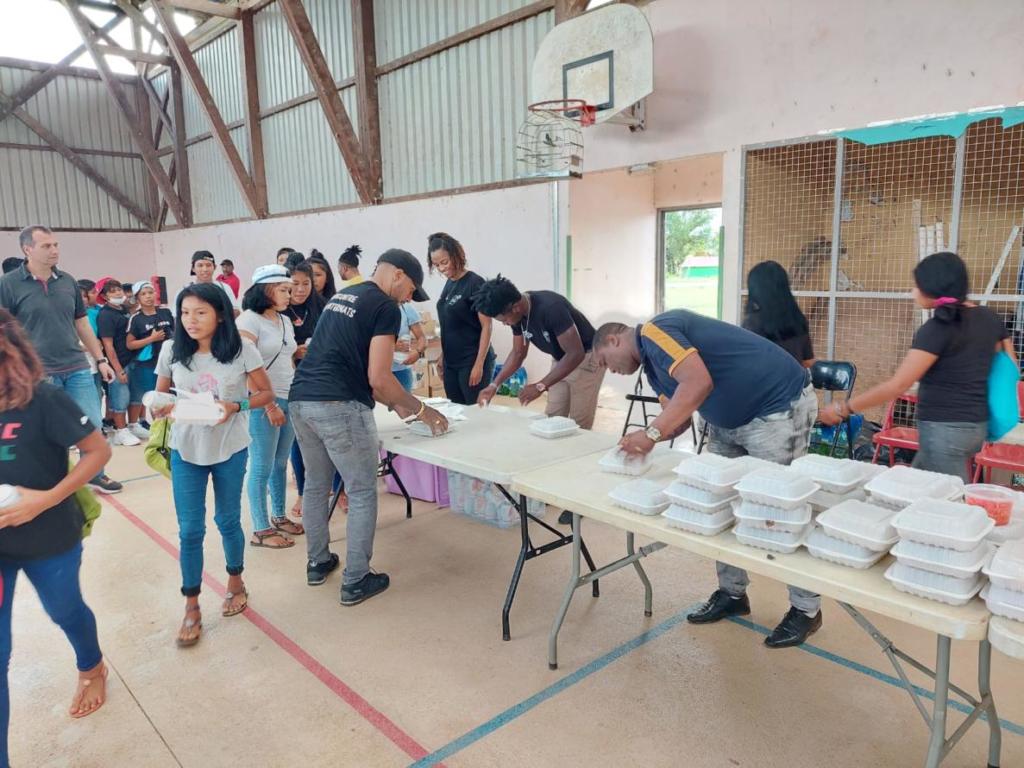 Dans le cadre des rencontres organisées par la Collectivité Territoriale de Guyane, entre les élèves des internats des collèges et lycées de Guyane, les élèves internes du collège Constant Chlore de Saint-Georges de l’Oyapock, originaires du village de Trois-Sauts se sont rendus à Maripasoula, afin de rencontrer leurs camarades du Haut-Maroni, ce jeudi 4 mai 2022, en présence de Raymond Deye, 15è vice-président de la CTG, délégué à l’égalité des chances et des territoires et de Mirta Tani, conseillère territoriale déléguée à la coopération transfrontalière avec le Suriname.