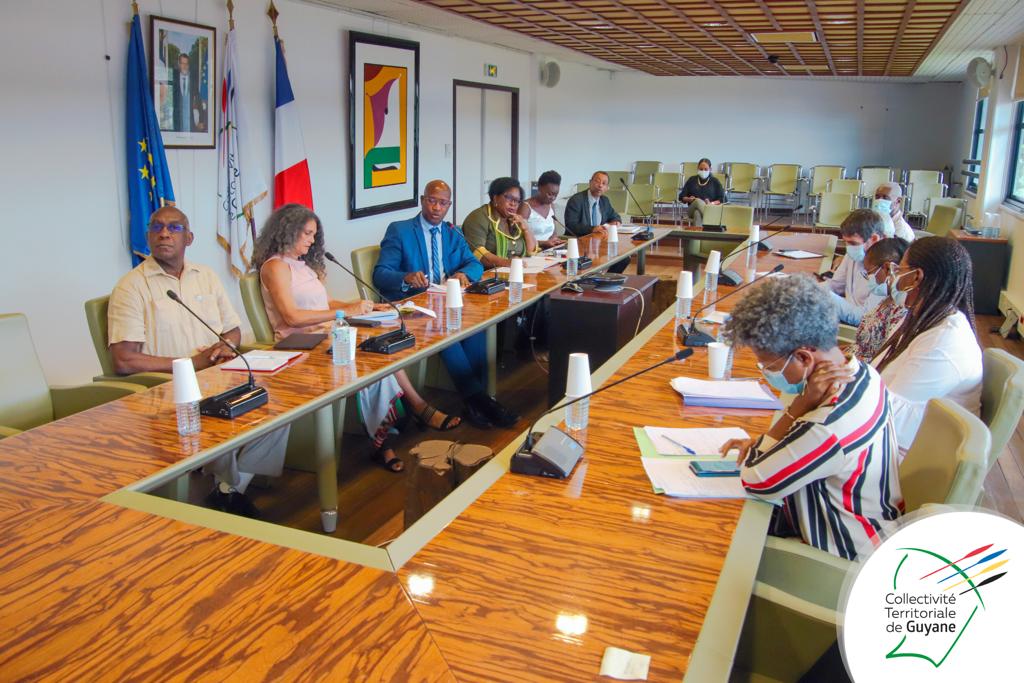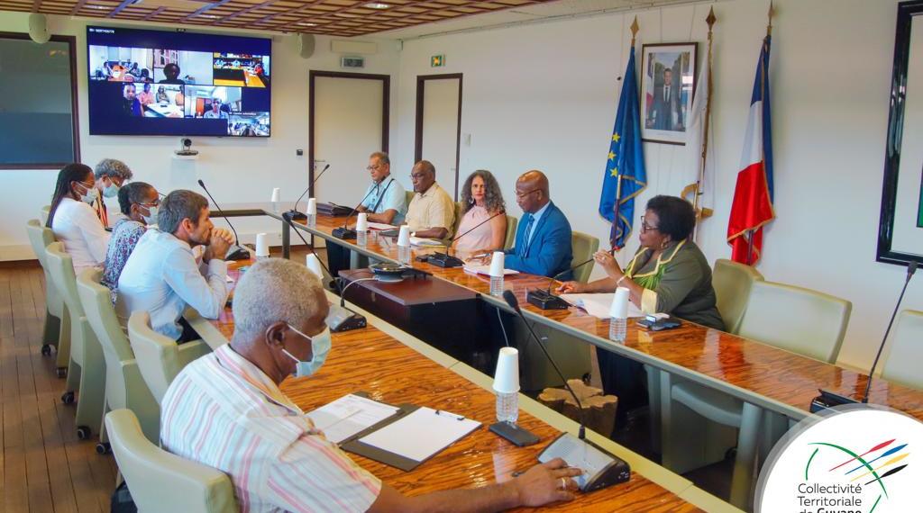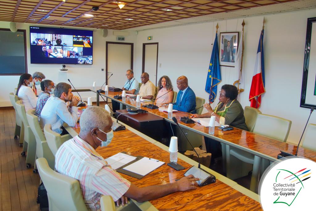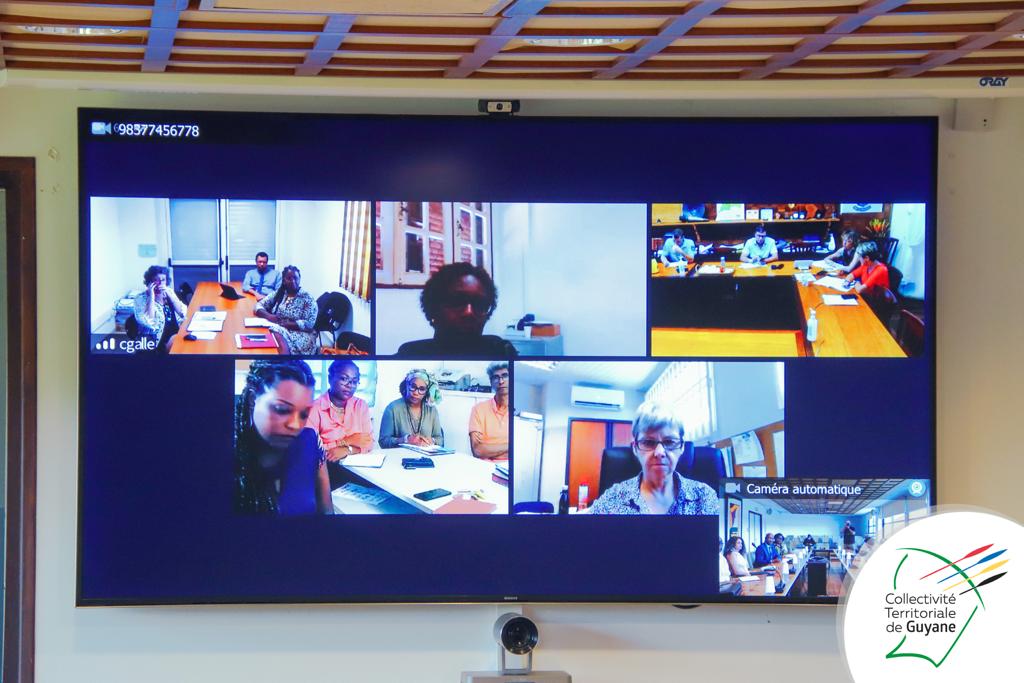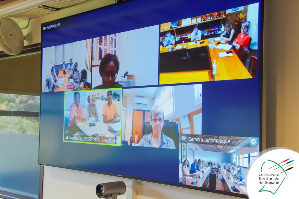 Ce vendredi 25 mars 2022, Gabriel Serville, président de la Collectivité Territoriale de Guyane, Annie-Robinson Chocho, 2è vice-présidente, déléguée à l’éducation et aux constructions scolaires, Isabelle Vernet, conseillère territoriale déléguée à la réussite scolaire et à la lutte contre le décrochage, Sophie Charles, maire de la ville de Saint-Laurent du Maroni, les services de l’État, les services académiques, le représentant des chefs des Établissements Publics Locaux d’Enseignement et la communauté éducative de Saint-Laurent du Maroni, se sont réunis en visioconférence afin de faire le point sur la situation des établissements de la commune.