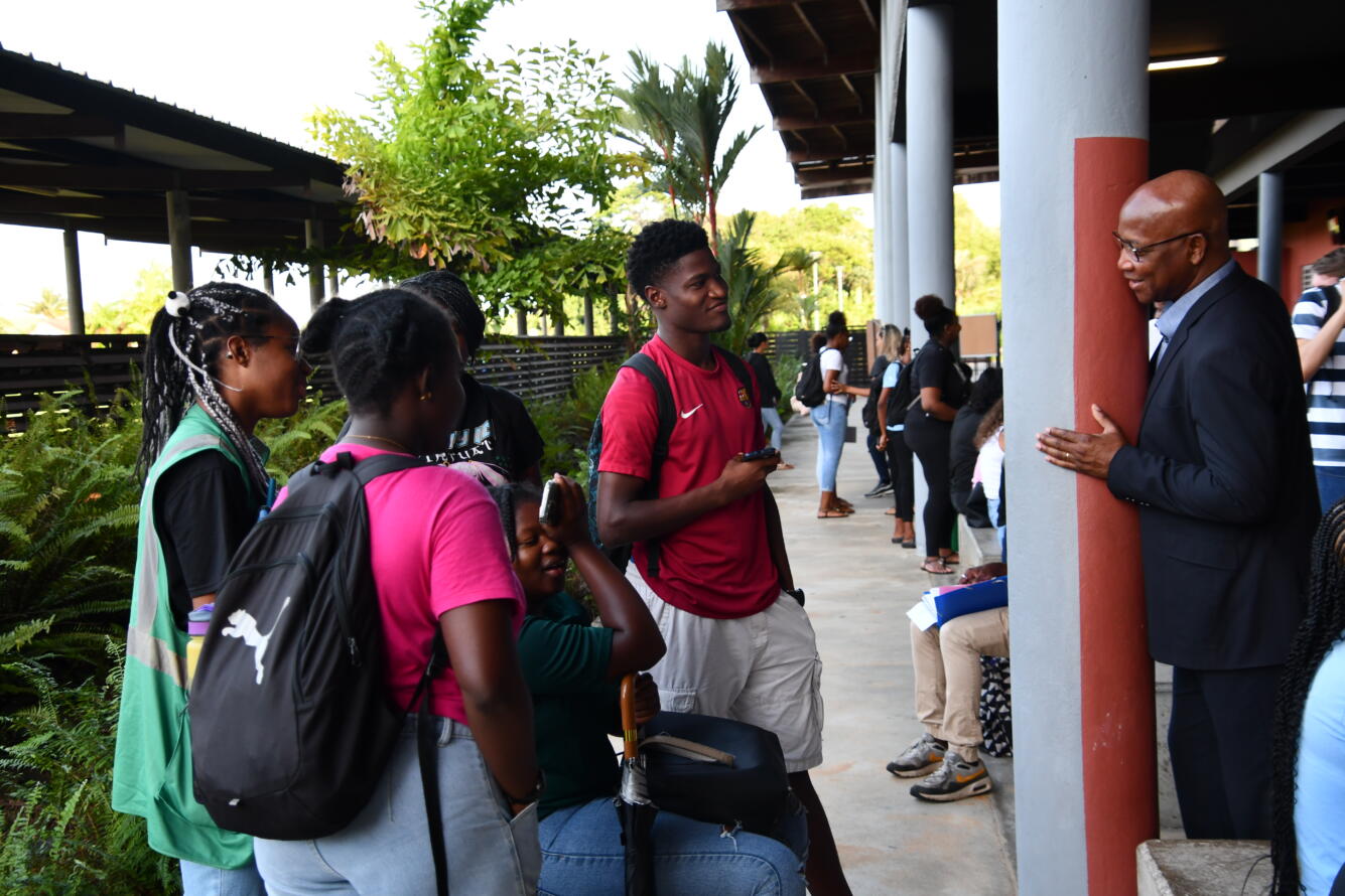 Gabriel Serville, président de la CTG s’est notamment rendu au lycée Lama-Prévot à Rémire-Montjoly accompagné de Bernadette Duclona-Constant, vice-présidente de la CTG, déléguée à la citoyenneté et au vivre ensemble et de Philippe Dulbecco, recteur de l’académie de Guyane afin d’encourager les 250 lycéens en classe de terminale avant le début des épreuves et féliciter les organisateurs et bénévoles présents pour cette initiative.