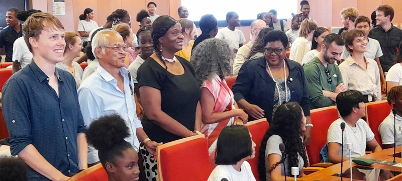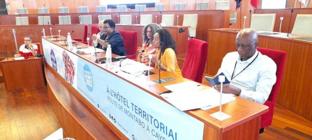 Les lycéens ont pu découvrir la salle des délibérations où sont votées les grandes décisions pour la Guyane et participer à une conférence-débat sur l’organisation et le fonctionnement de l’institution animée par la 2ème vice-présidente, en présence des élus territoriaux Isabelle Vernet, conseillère territoriale déléguée à la Réussite scolaire et à la Lutte contre le décrochage scolaire, Sherly Alcin, conseillère territoriale déléguée au Climat et à l’Éducation à l’environnement et au protocole, Bernadette Duclona-Constant, 10ème vice-présidente de la CTG déléguée à la Citoyenneté et au Vivre-ensemble :